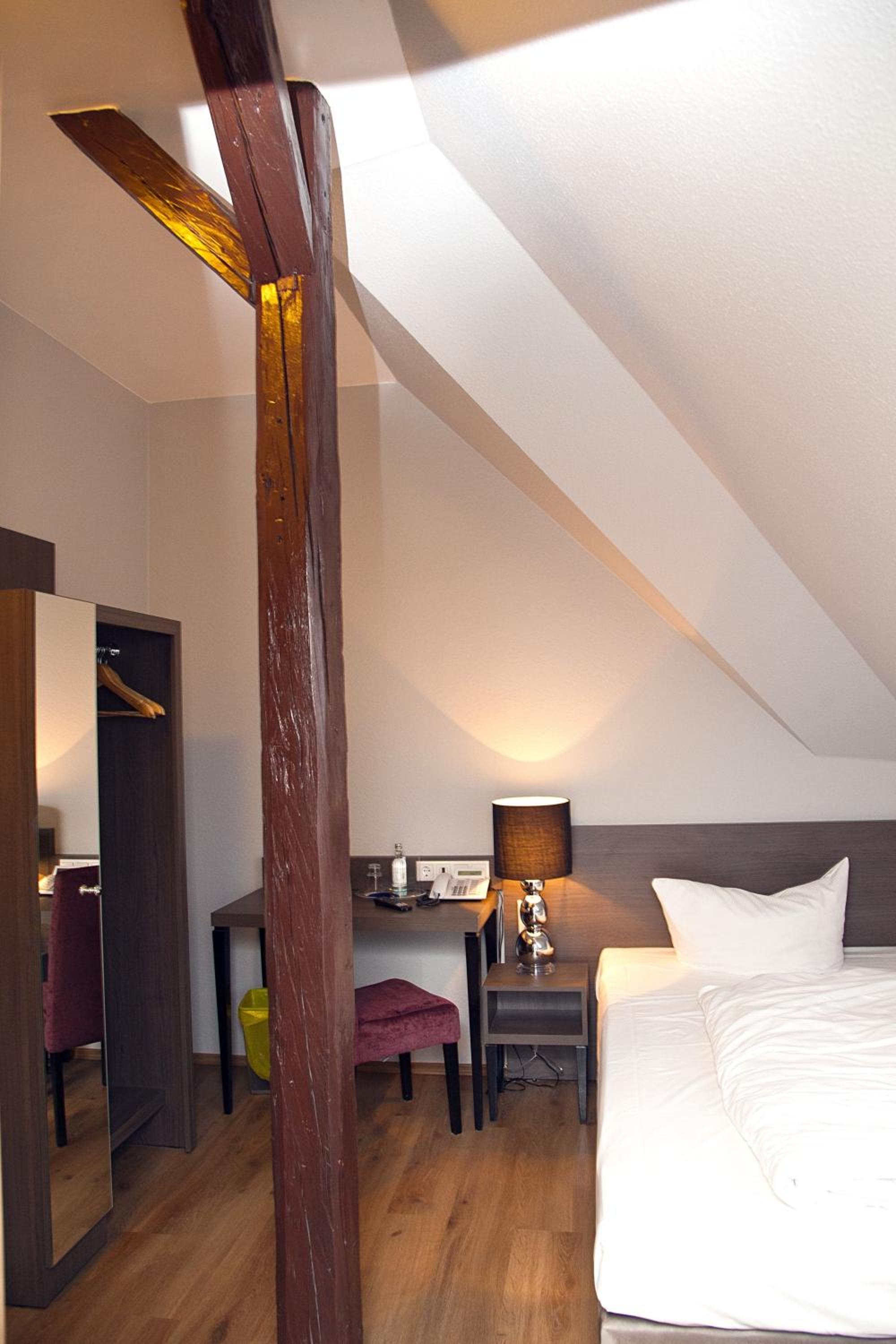 Einfacher Check-in: online oder Vor Ort. Geräumiges Zimmer mit Schreibtisch und kleinem Kleiderschrank. Seh hohe Decken. Parkplätze gegen Gebühr direkt am Hotel, aber auch kostenlose Parkplätze in der Straße verfügbar.