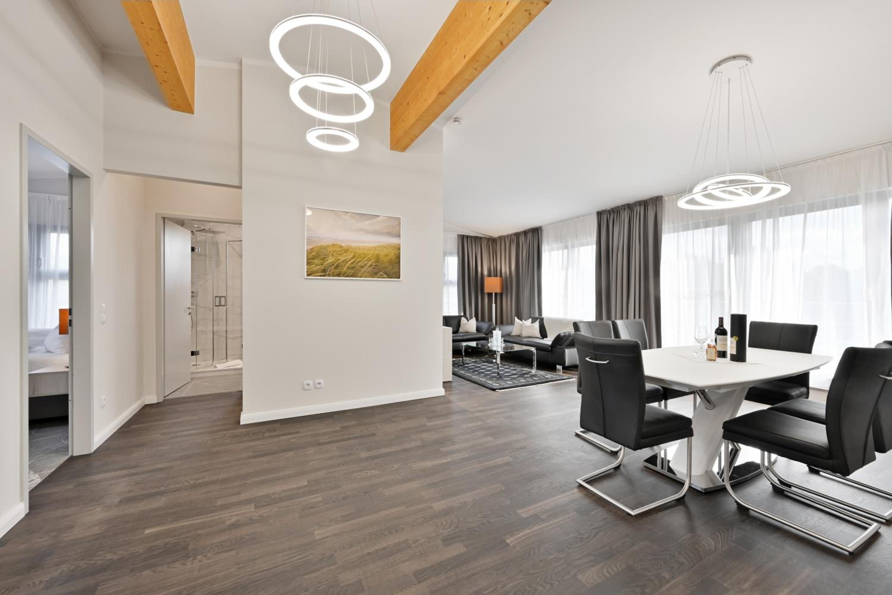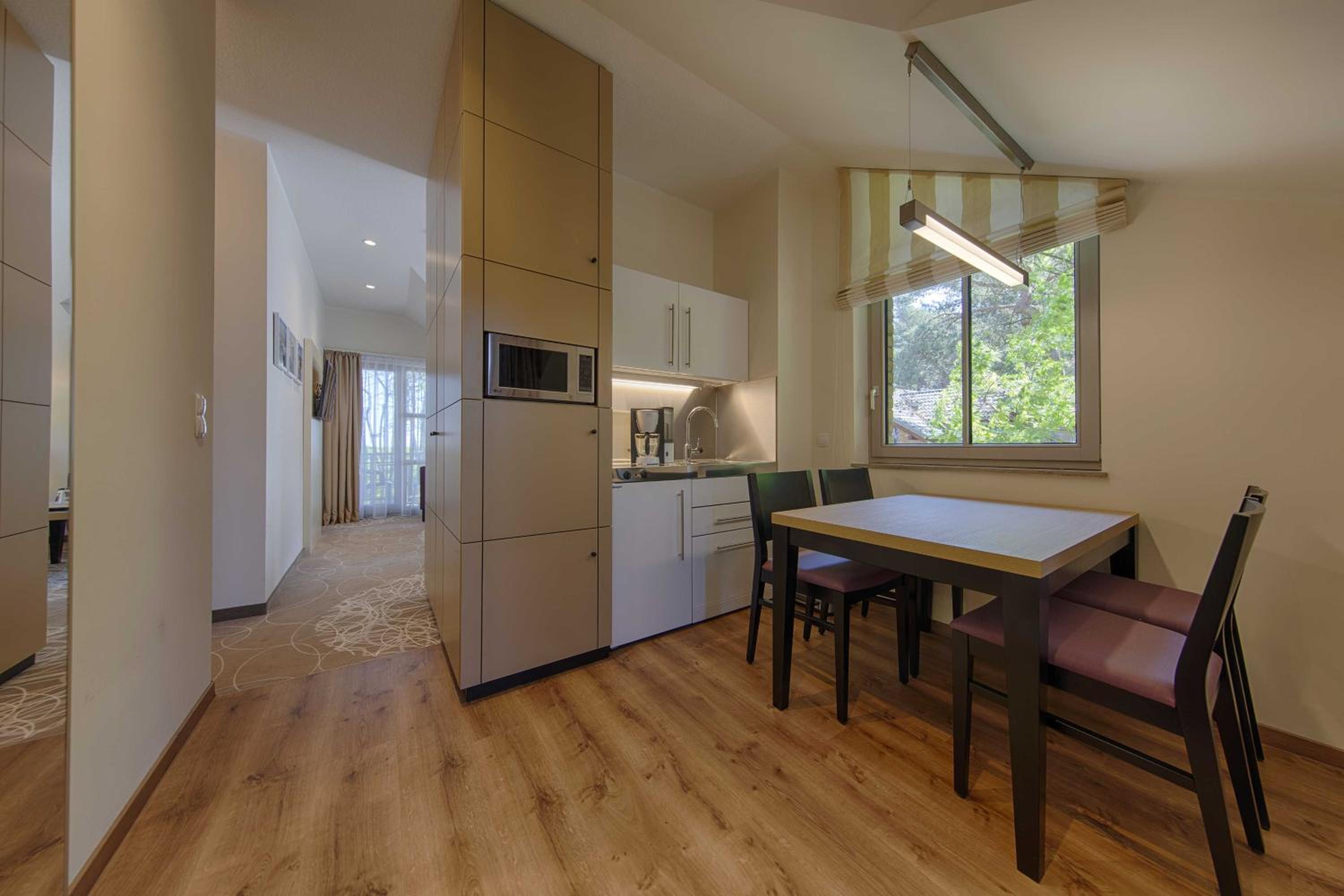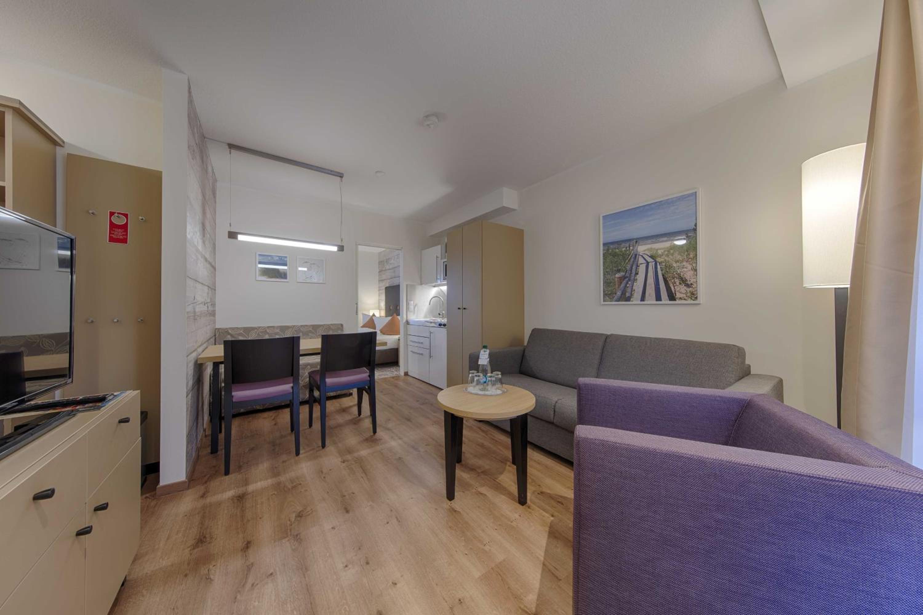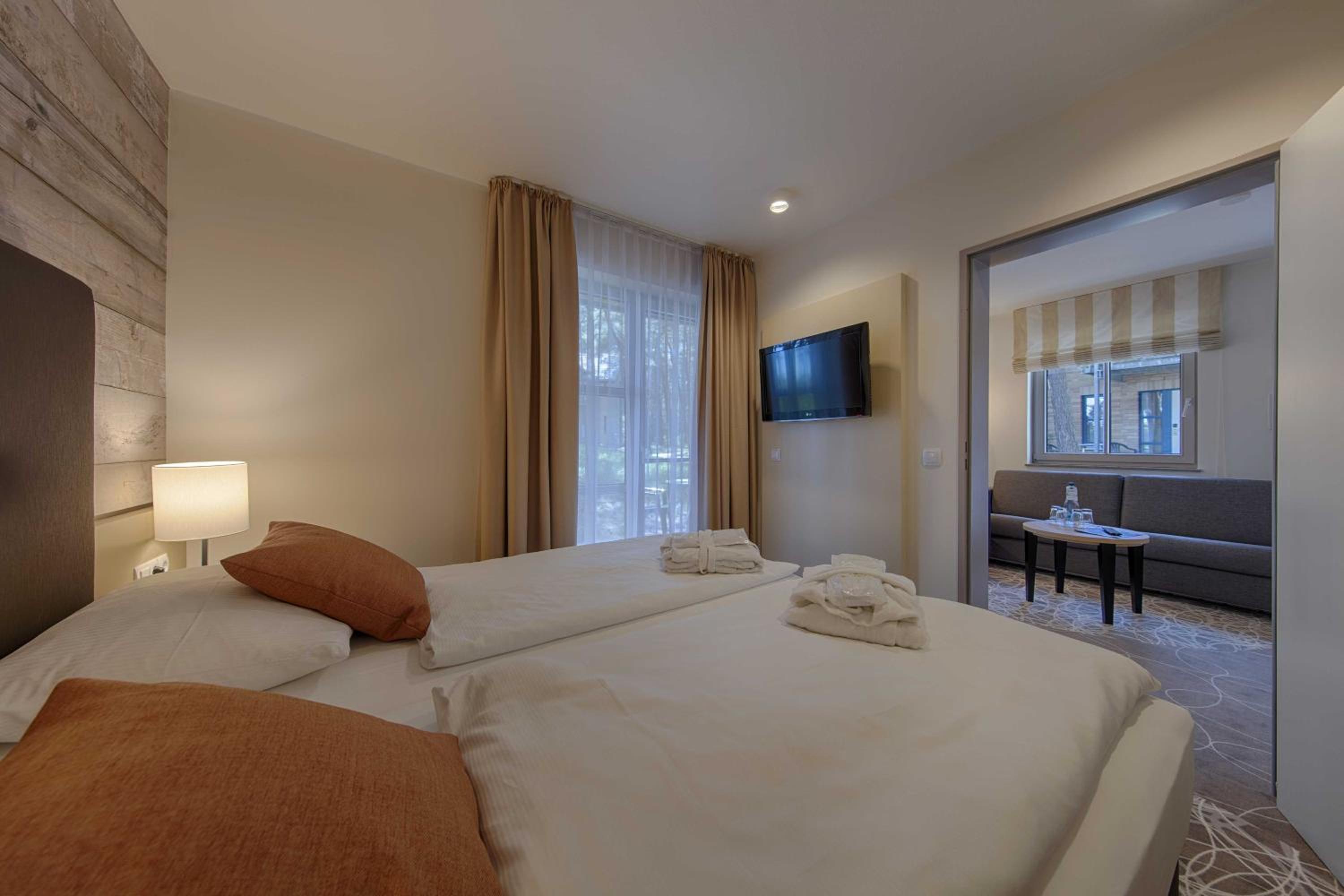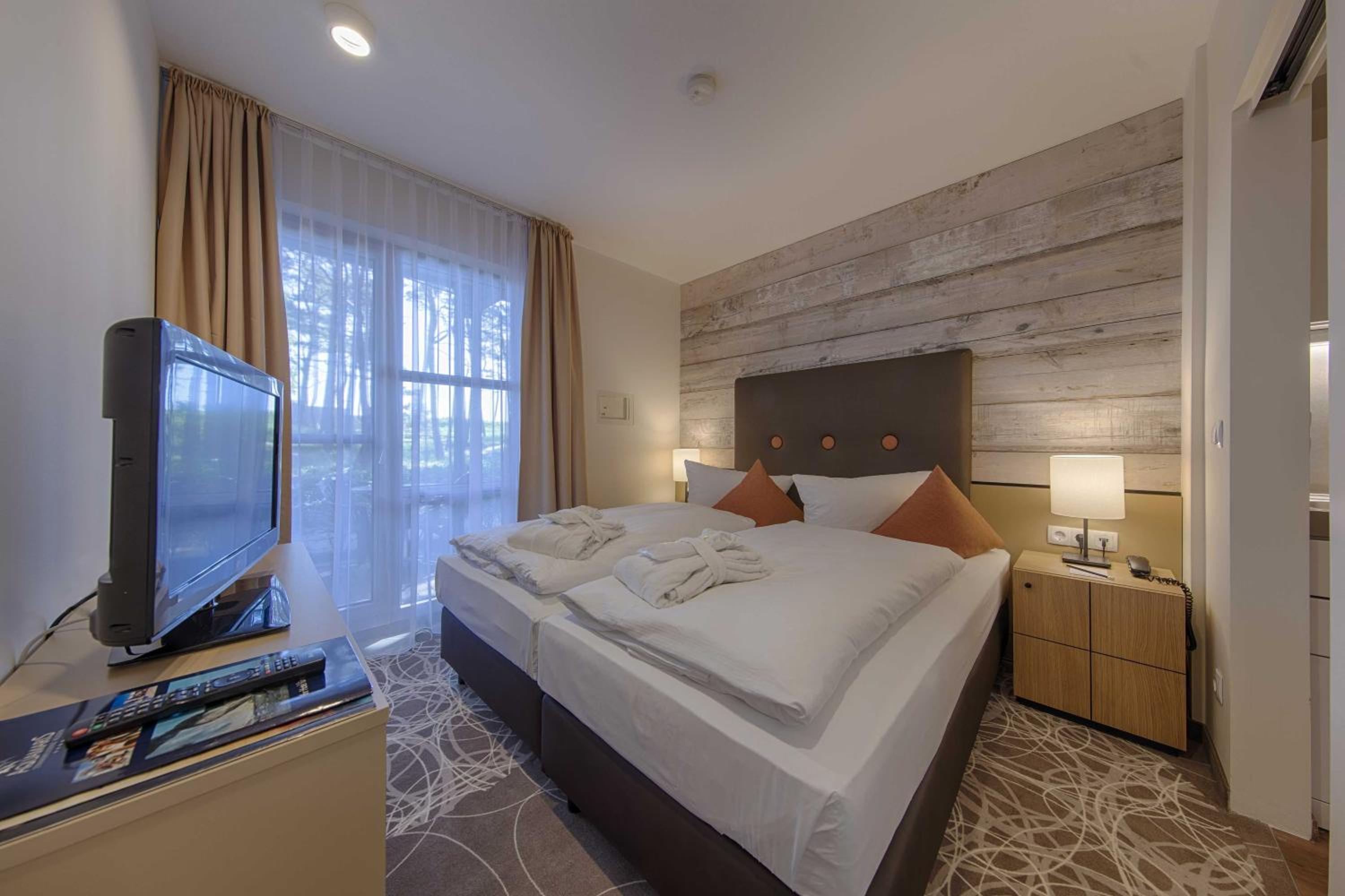 The Aquamaris Strandresidenz Rügen hotel offers tastefully furnished rooms and suites, many with a private balcony or terrace, providing a comfortable and relaxing stay for guests.