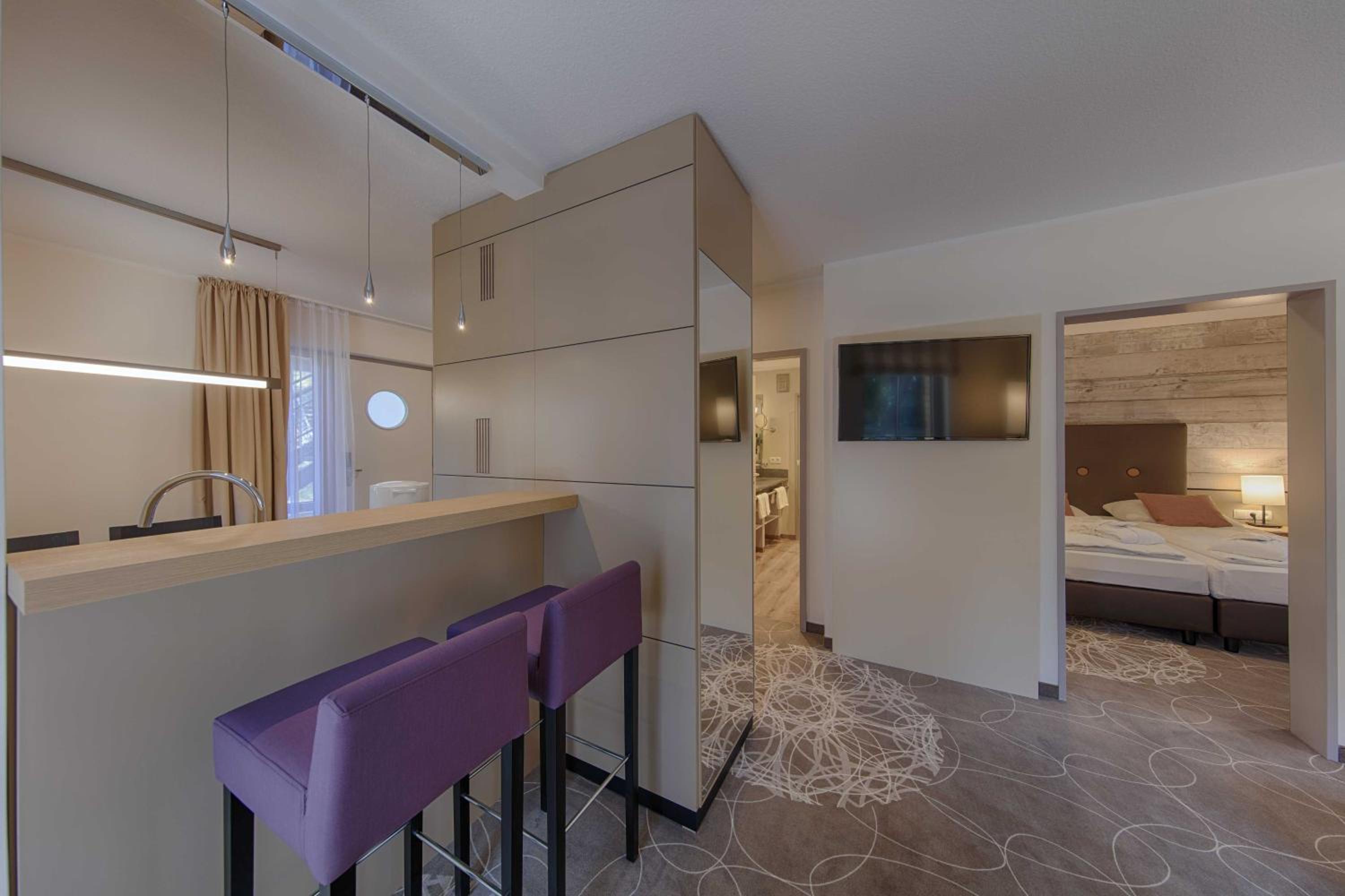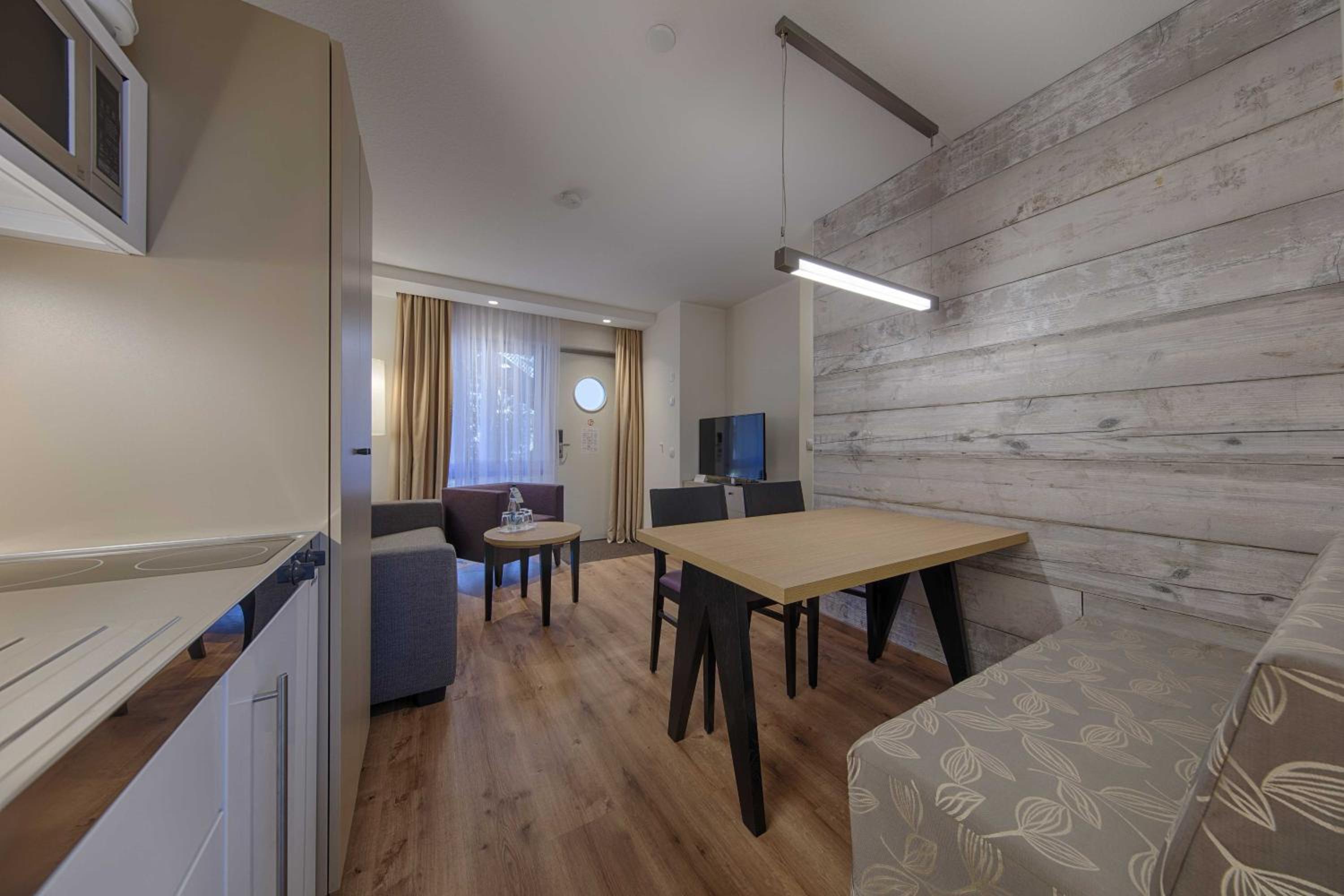 Sehr kleine Küchenzeile, Regendusche war so verkalkt, dass das Wasser oben rauslief. Super laute Lüftung im Badezimmer. Wasser der Toilettenspülung eindeutig zu wenig. Betten waren bequem, leider war die Besucherritze etwas lästig. Spa Bereich könnte man etwas ausbauen, es sieht auf den Fotos etwas luxuriöser aus.