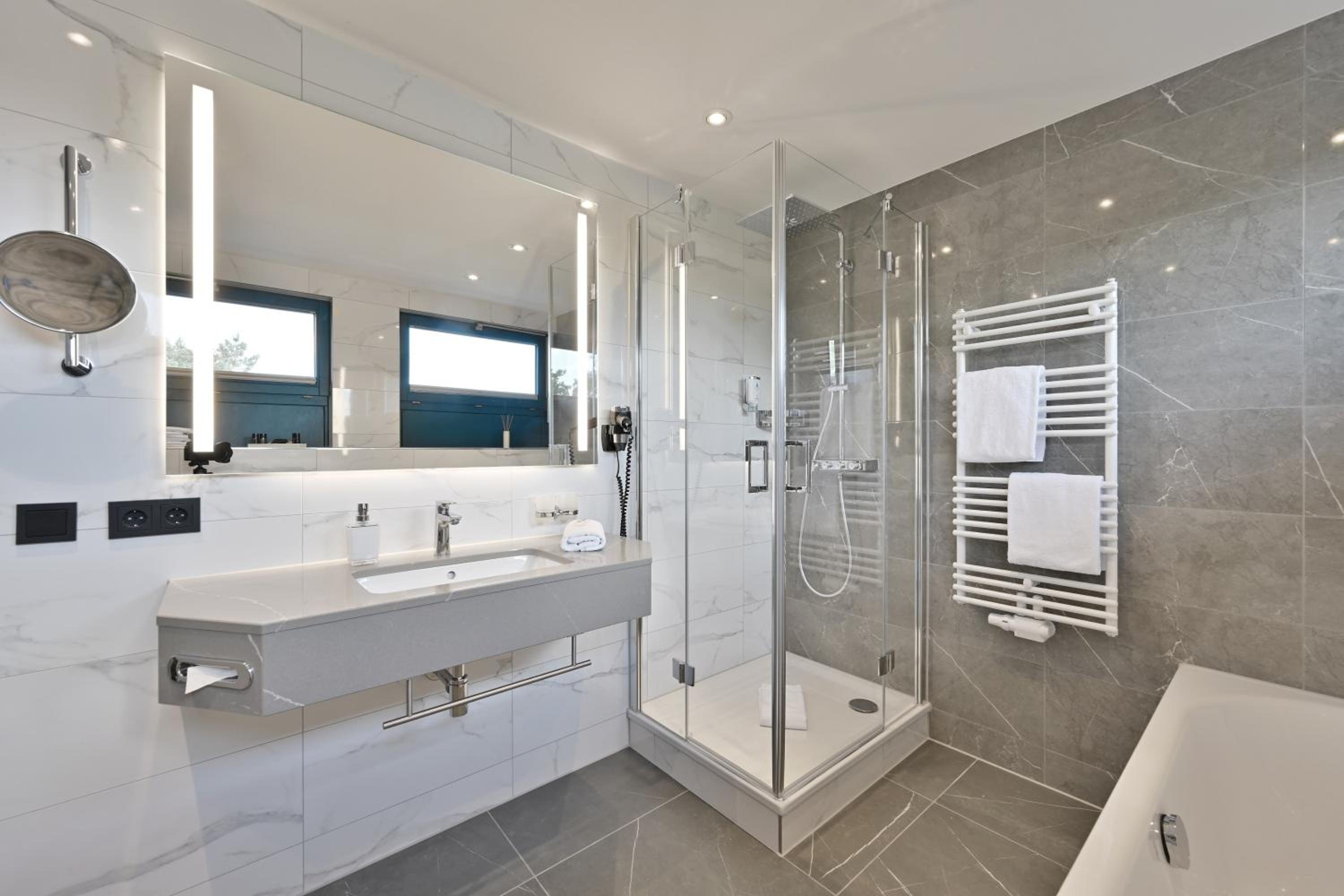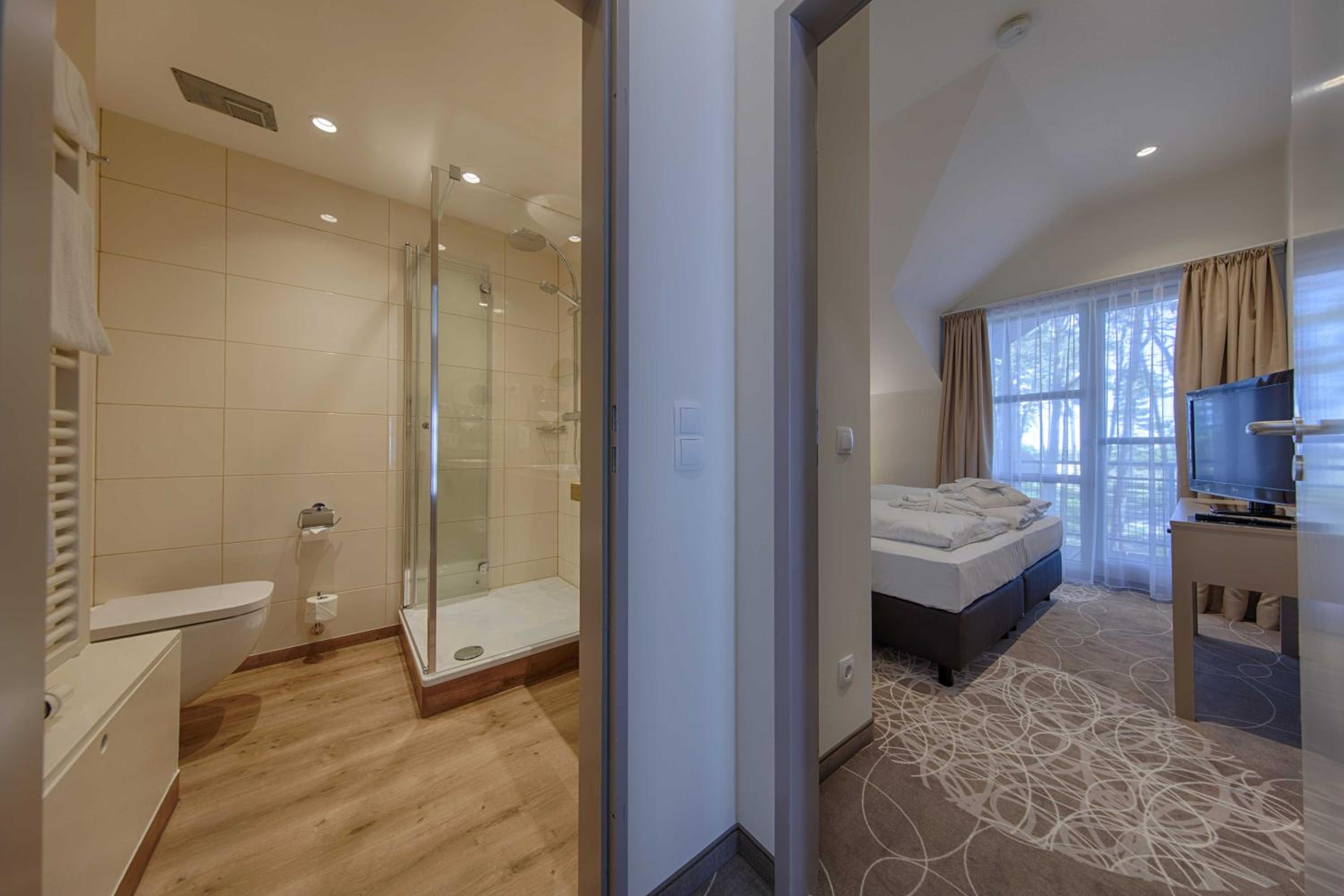 Wir wollten Erholung, Bewegung und gut essen und haben das alles hier gefunden. Das Frühstücks- und Abendbuffet waren sehr gut, das Personal mega aufmerksam und super nett. Das Schwimmbad, die Sauna, der Fitnessraum sind sehr schön, sauber und sehr gut ausgestattet. Eine Kegelbahn, Tischtennis, Billard, Dart und ein Kickerautomat runden das gute Angebot ab. Die Anlage liegt direkt am Meer. Wir hatten eine 30m2 Ferienwohnung. Die kleine Küche ist umfangreich ausgestattet, ein Fernseher ist im Wohnraum und im Schlafzimmer. Einen Spielplatz gibt es auf dem Außengelände. Unser eAuto konnten wir an den vorhandenen 11 kW Säulen zum fairen Preis laden.