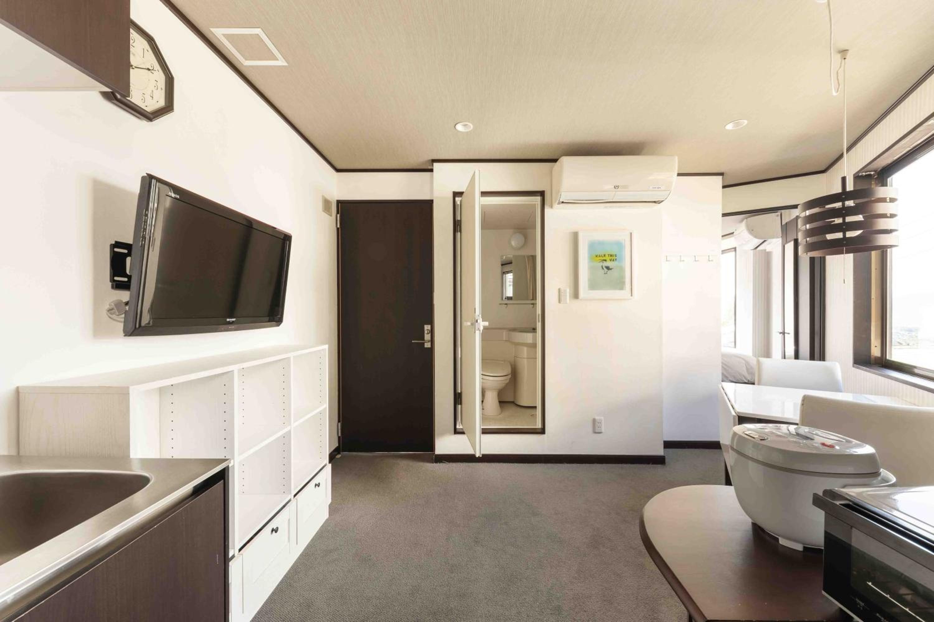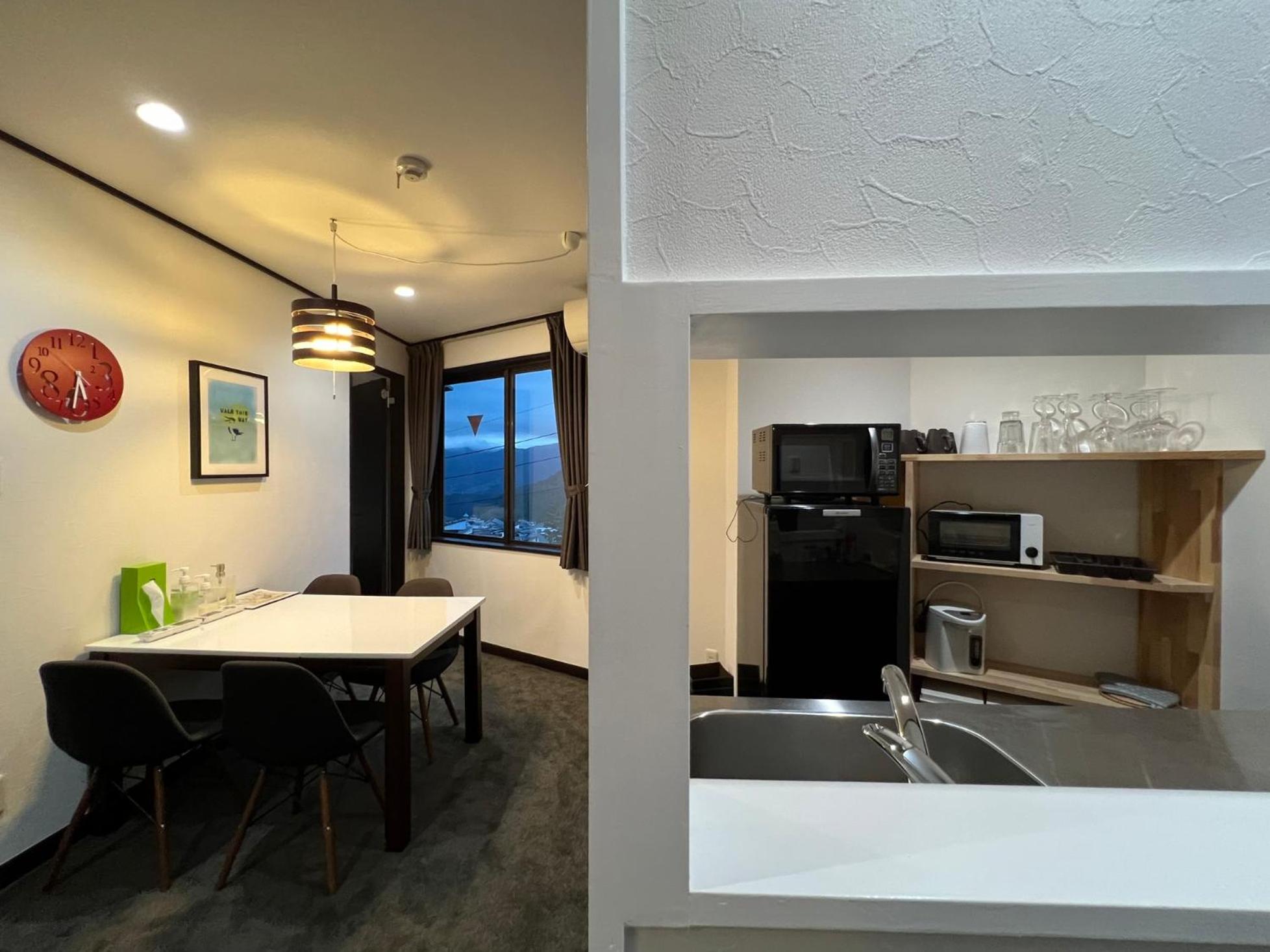 Each air-conditioned unit at the aparthotel is well-equipped with essential facilities including a kitchenette, flat-screen TV, and private bathroom. Guests can relax in the hot spring bath, savor mountain views, or cook their own meals before dining in the private area.