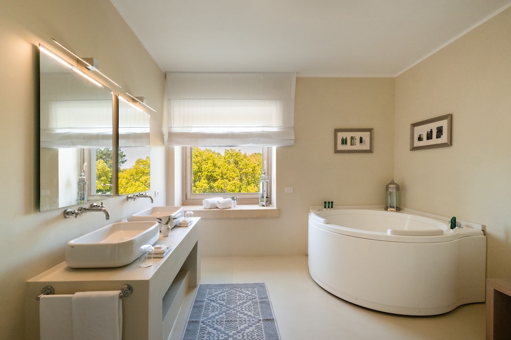 Lovely hotel and facilities. Delicious food. Large rooms. Contemporary and luxurious fittings. Restful and quiet stay. Genuine 5 star review. Just be aware it's 30 mins drive from Lecce in rather featureless countryside. Once you enter the gates it's a different world.