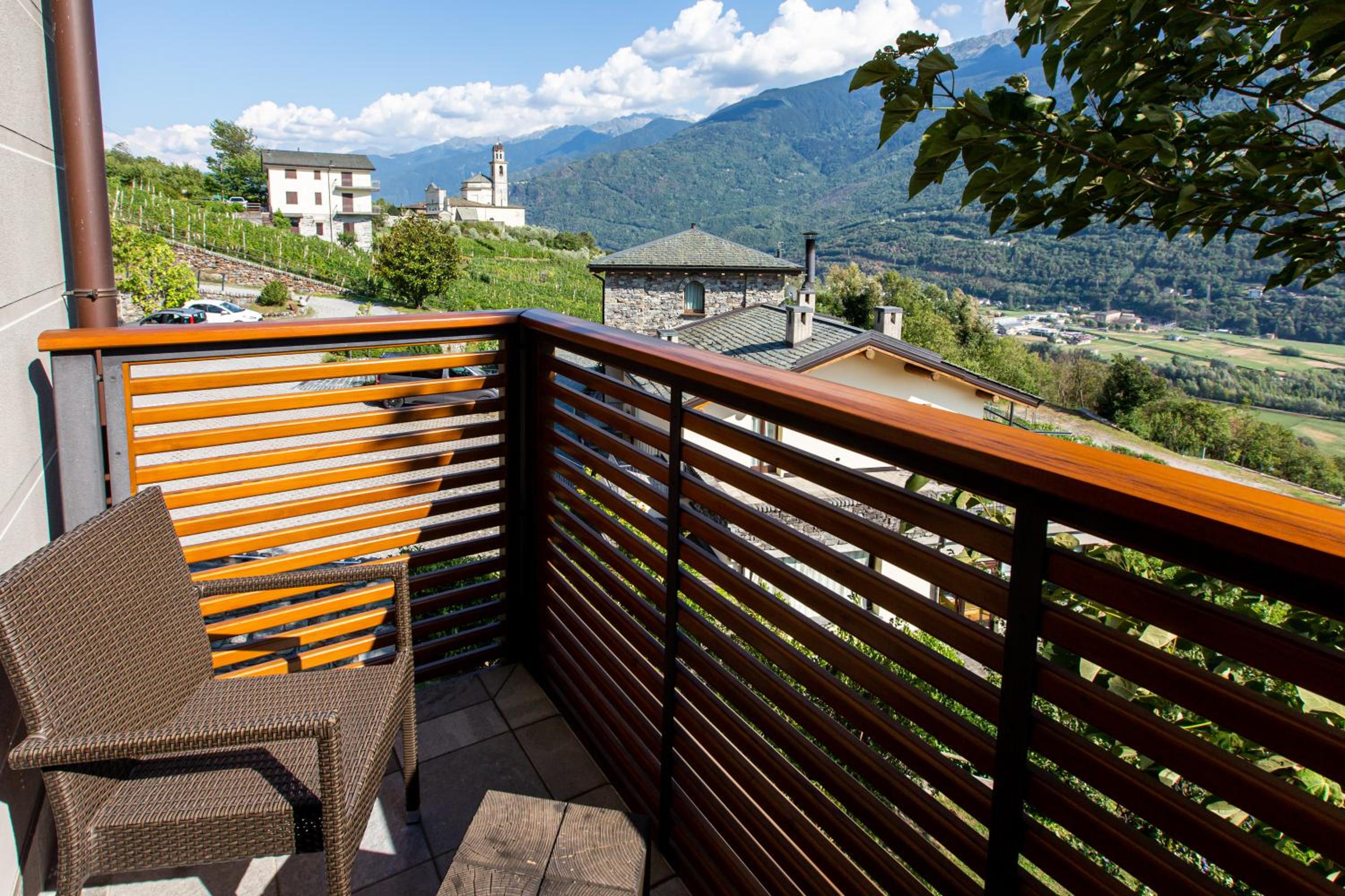 Experience the charm of Wine Hotel Retici Balzi, nestled in the picturesque village of Poggiridenti. Each room, named after a local wine, offers stunning mountain views and modern amenities like air-conditioning and an LCD TV.