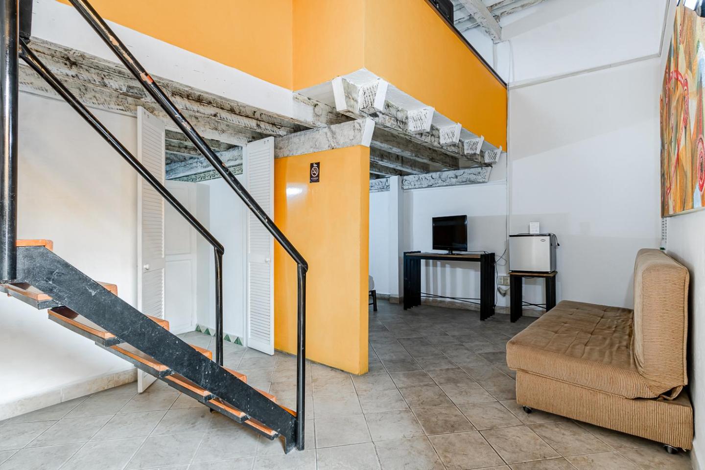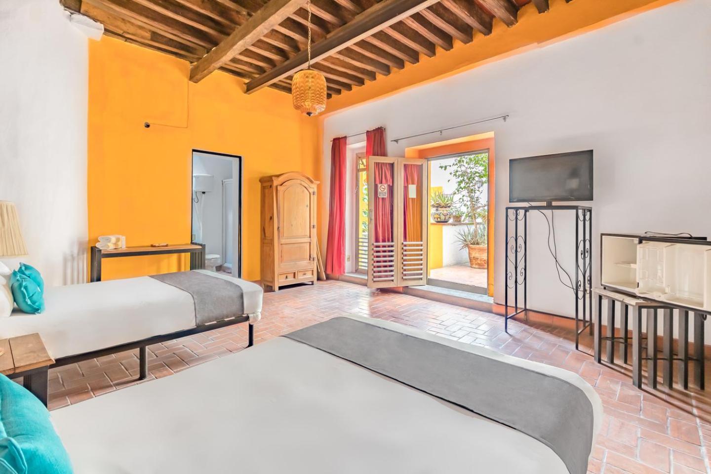 Mesón de San Sebastián, nestled in central Puebla, offers elegantly decorated rooms equipped with modern amenities like a working desk, safety deposit box, and flat-screen TV. The private bathrooms with showers are stocked with complimentary toiletries for your convenience.