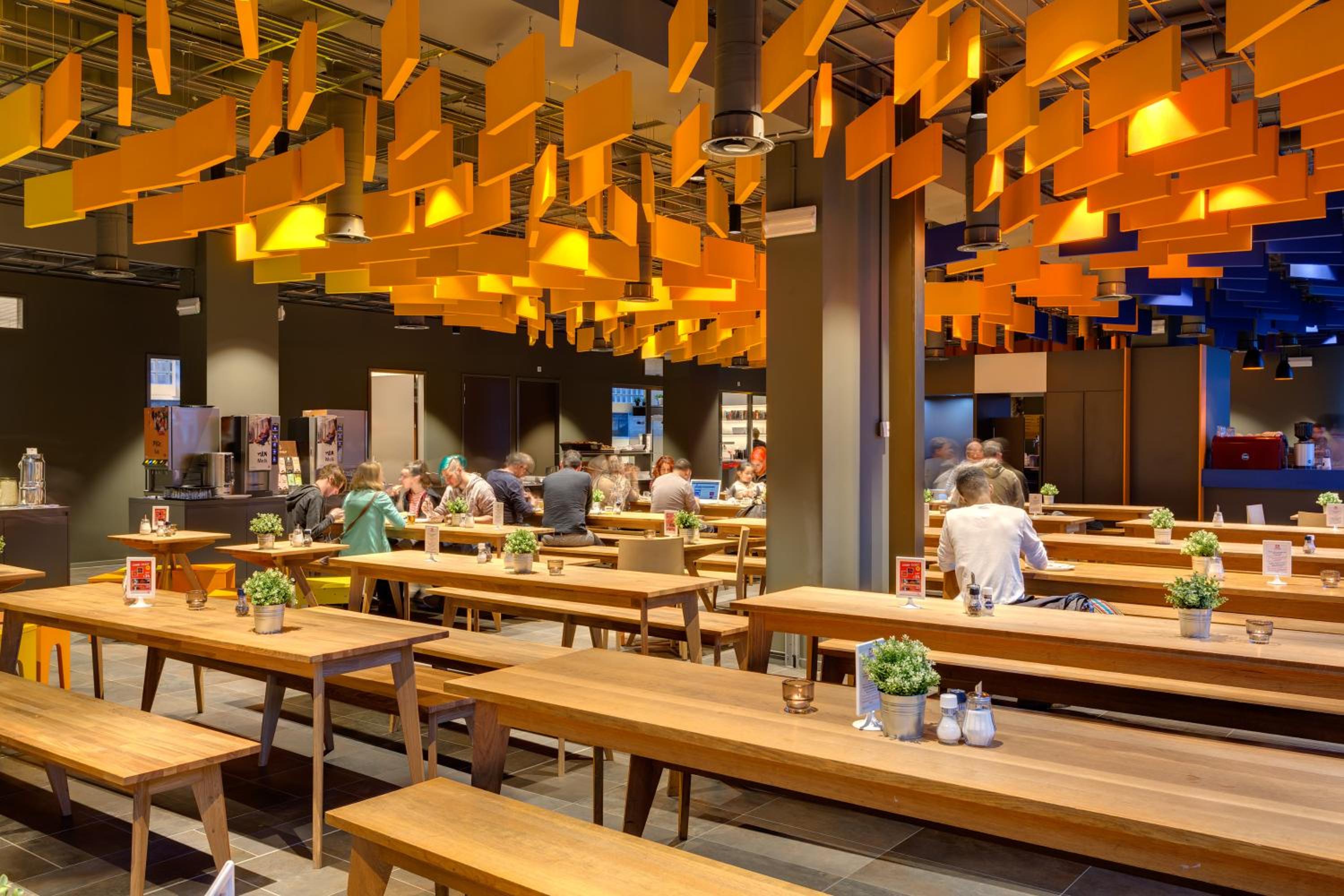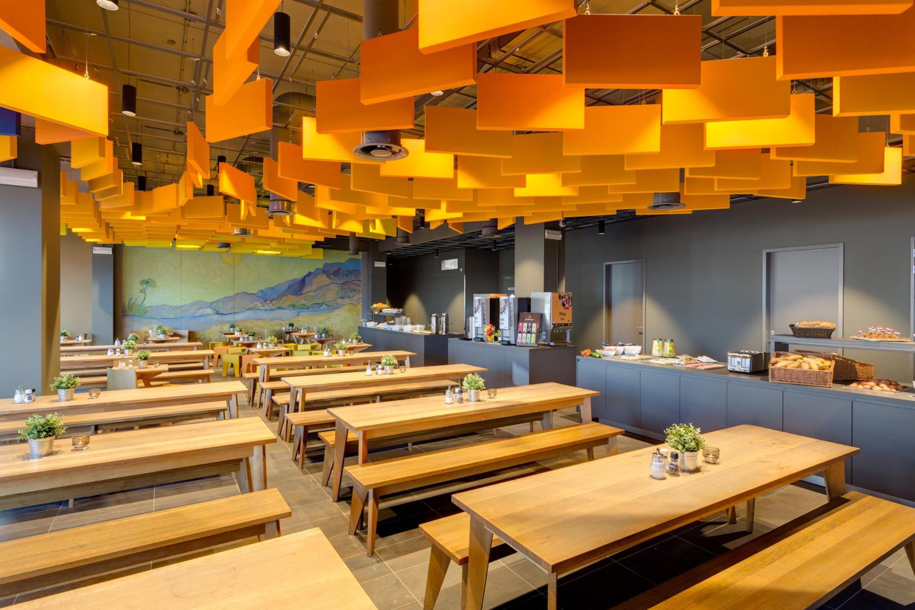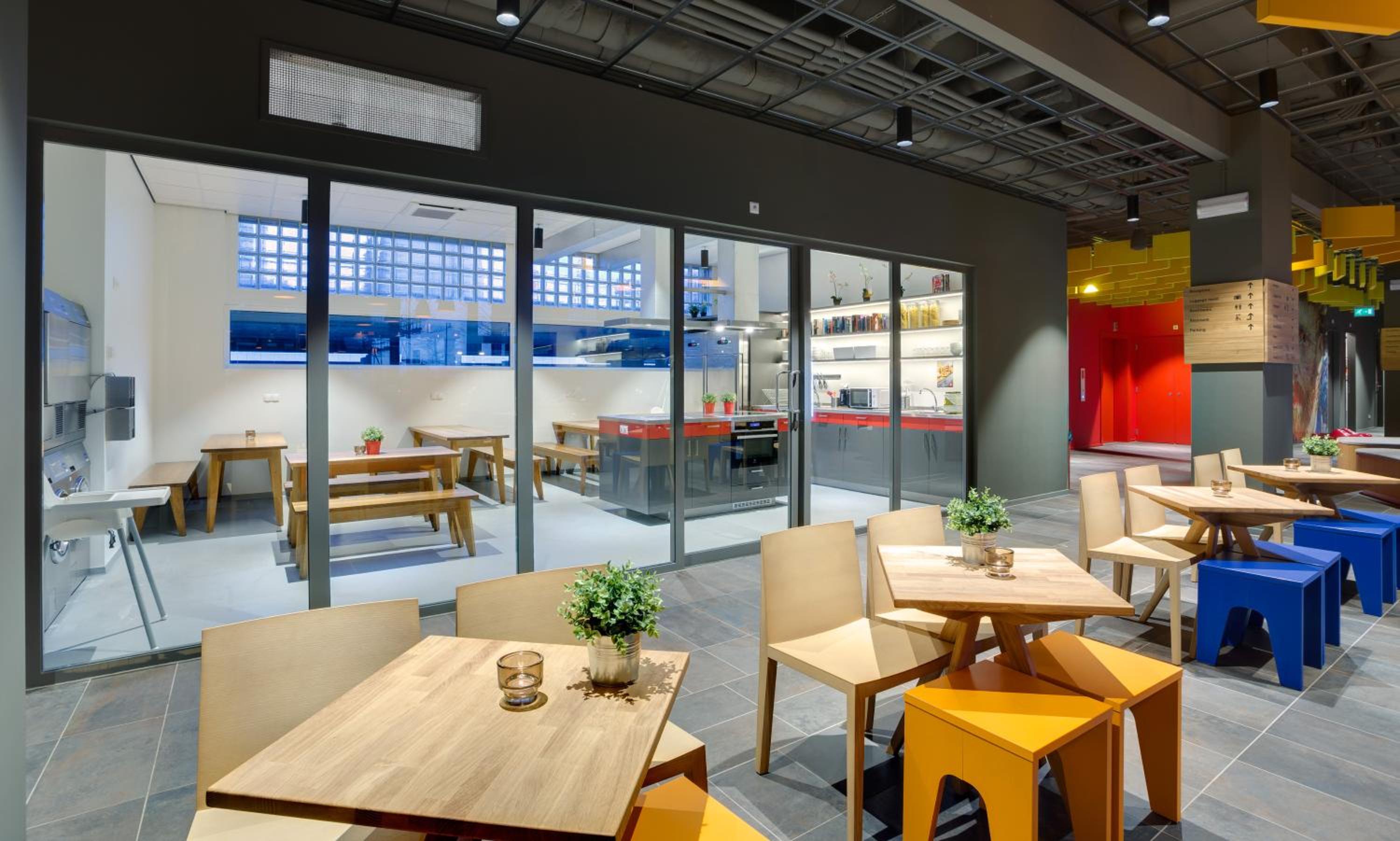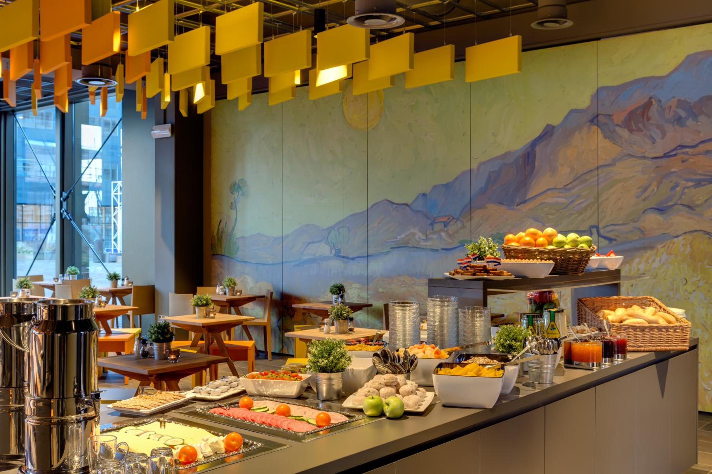 Guests can enjoy continental and buffet breakfast options daily at MEININGER Hotel Amsterdam City West. The hotel's bar, guest kitchen, and spacious lobby decorated with traditional Dutch art provide a unique and artistic ambiance for travelers to unwind and socialize.