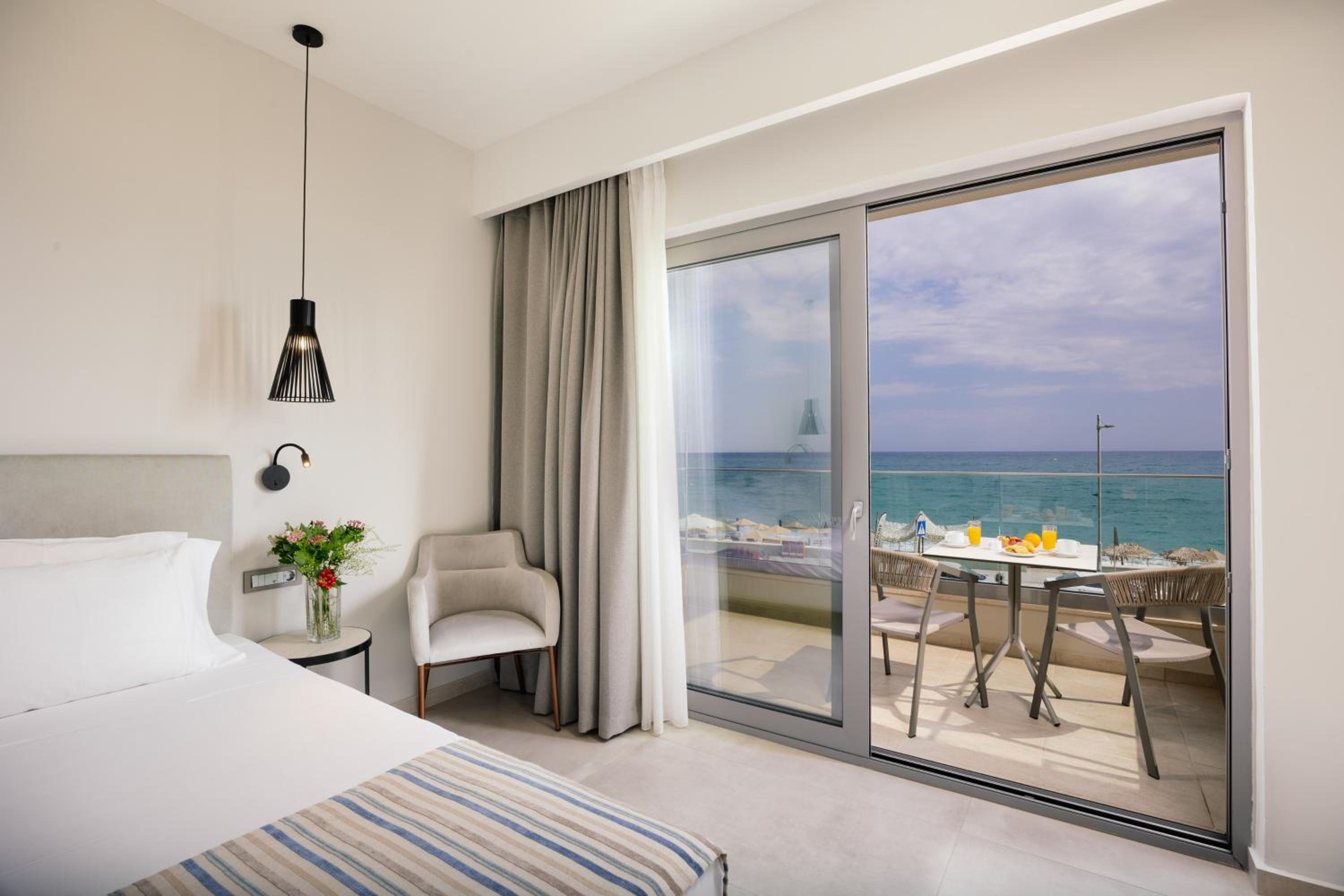The hotel’s location is perfect — the beach is right outside, and it’s just a short walk to the city center. The surroundings are peaceful, with no parties or noise near the hotel. After exploring Crete, we believe that Rethymno is the most beautiful place to stay.