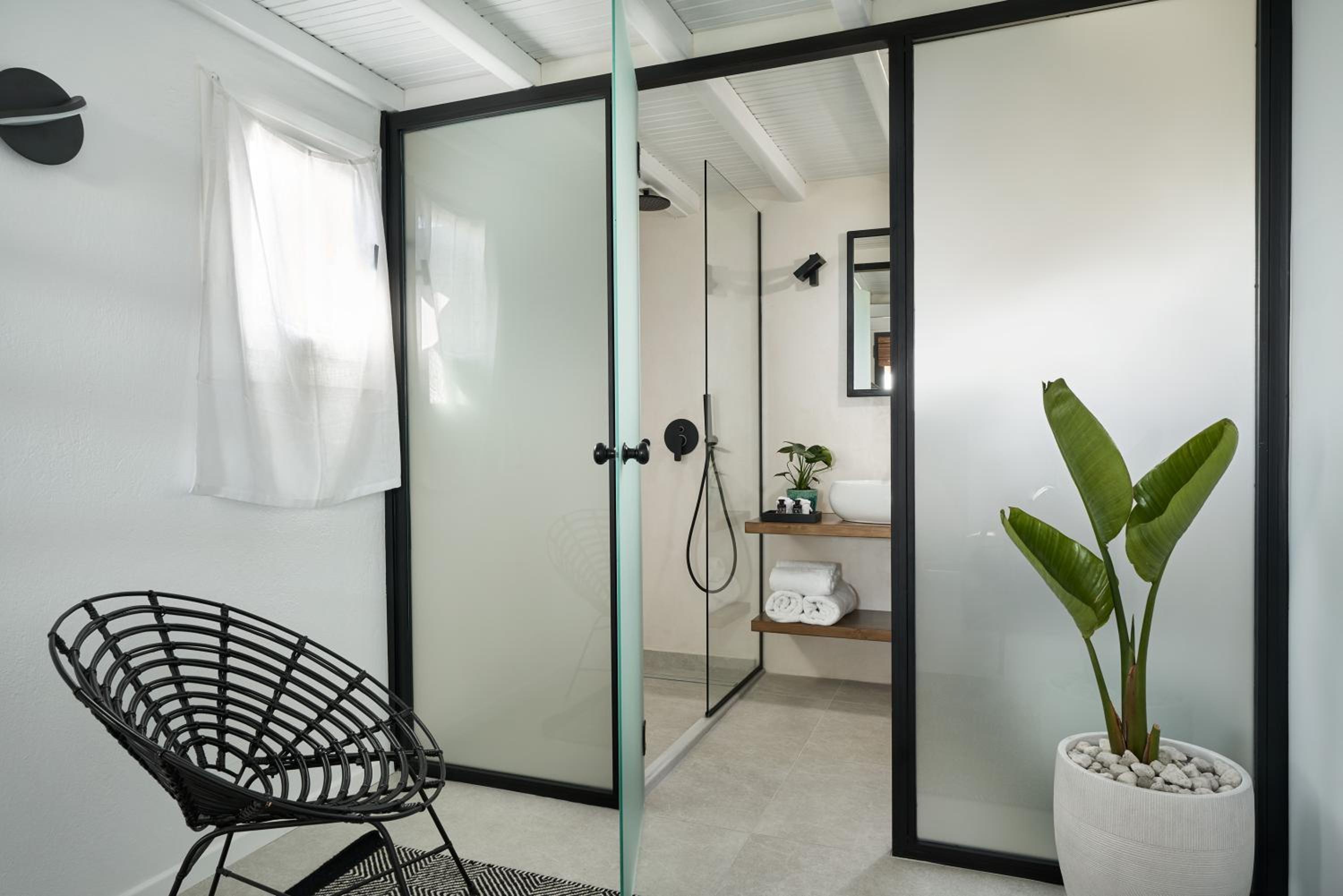 Emplacement au calme et en même temps proche en voiture de la ville de Mykonos. Belle literie et appartement propre. Bel espace piscine et pool house/restaurant. Gentillesse des propriétaires