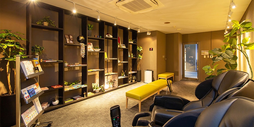 ロビーフロアにビリヤード台とダーツスペース、マッサージチェアと本のあるラウンジ、清潔で椅子のある喫煙室があります。