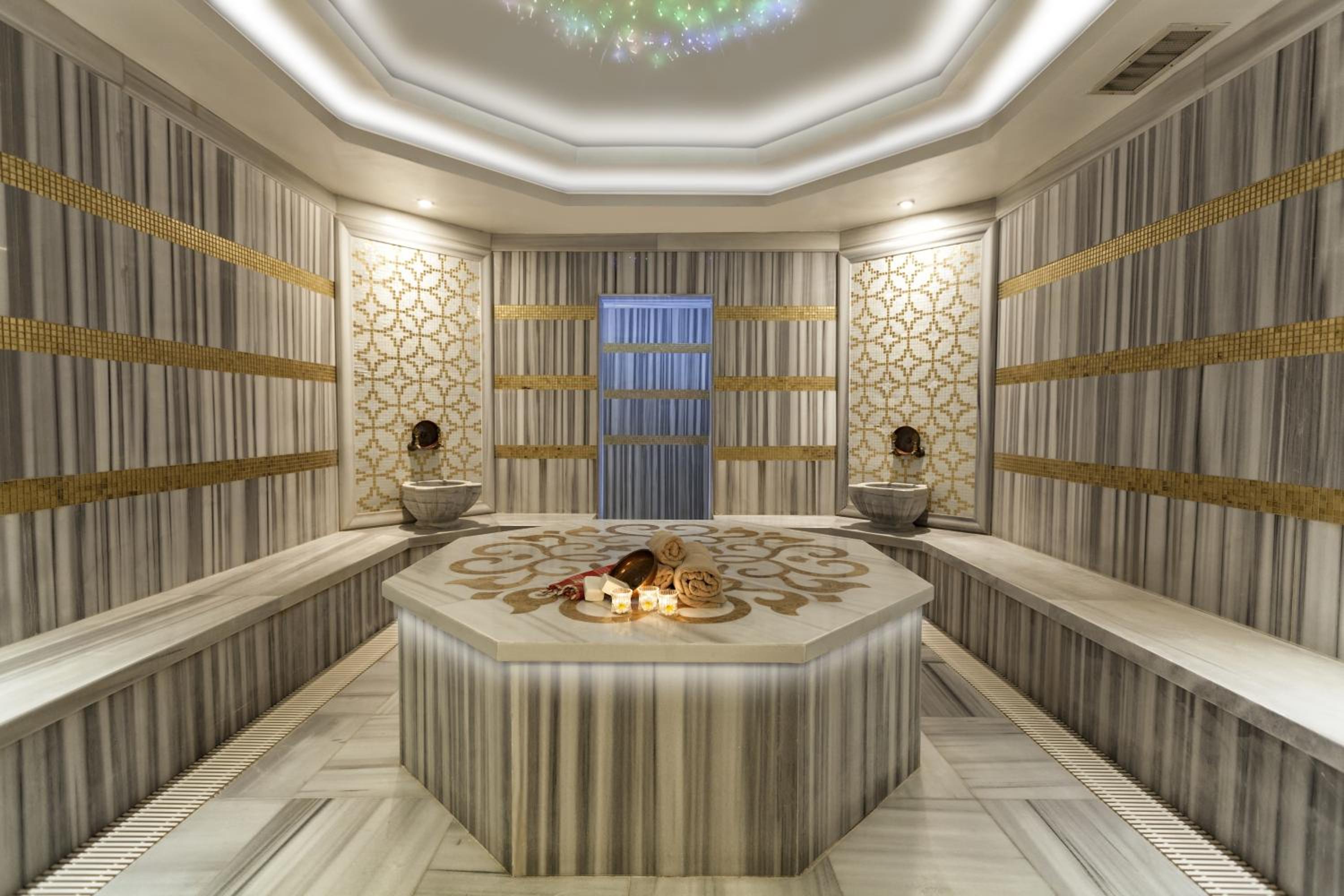 Indulge in relaxation at our extensive spa center, featuring an indoor pool, fitness center, Turkish bath, and sauna. Unwind and rejuvenate after a long day of exploring the city.