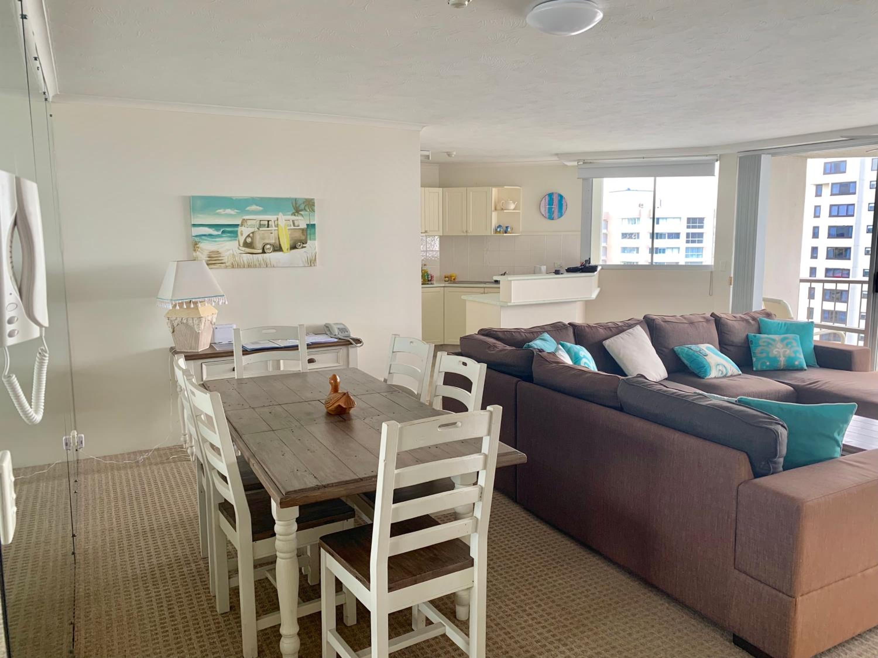 Great location and large well appointed apartment. On site management are approachable and friendly and try to help with special requests.