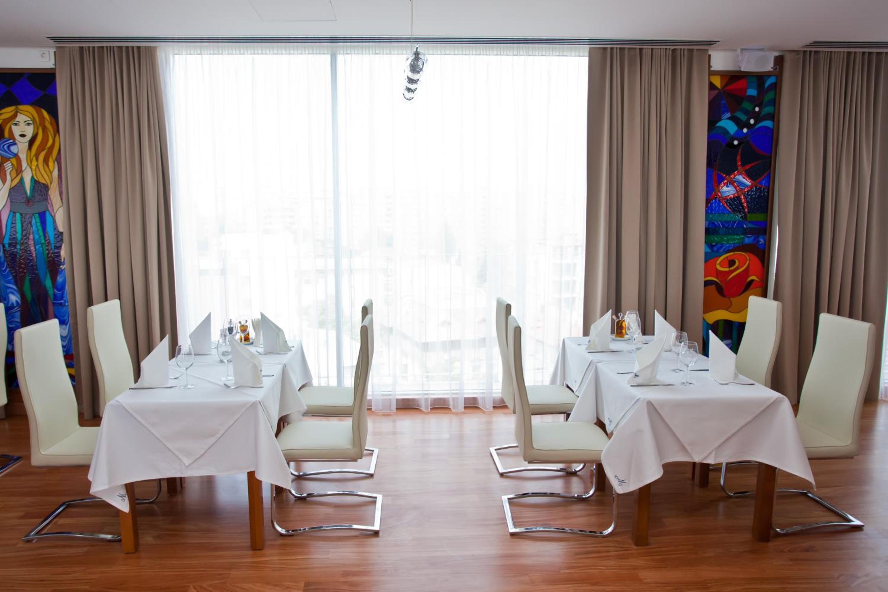 Guests can enjoy a Continental breakfast in the hotel's restaurant or opt for room service. Additionally, there is a 6th-floor restaurant with a heated terrace offering a 10% discount on meals. A lobby bar on the ground floor provides a cozy setting for drinks.
