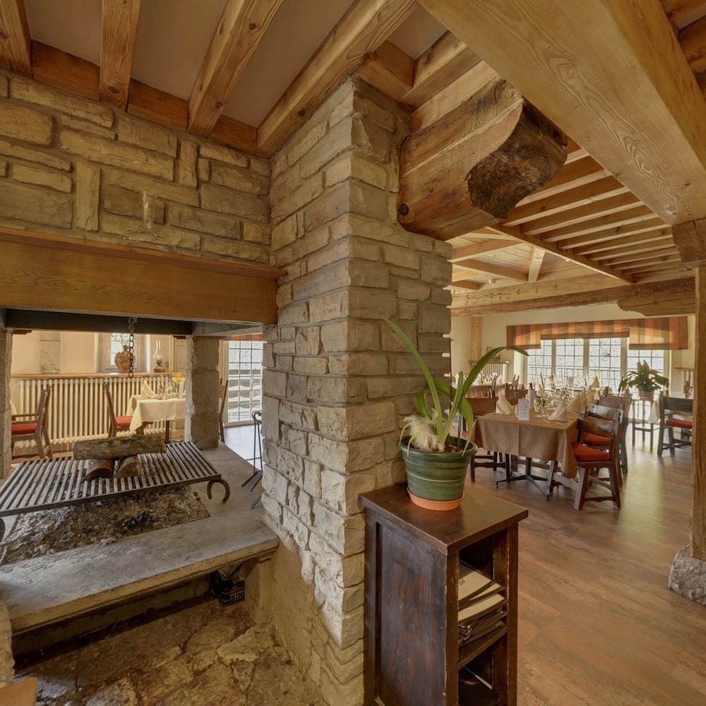 Très joli point de départ pour de belles ballades. Le décor est un peu suranné mais cadre bien avec l'histoire du lieu et ses vestiges comme le magnifique escalier à vis situé à côté de la cheminée monumentale qui sépare la grande salle de restaurant en deux. Cerise sur le gâteau on y mange délicieusement bien !