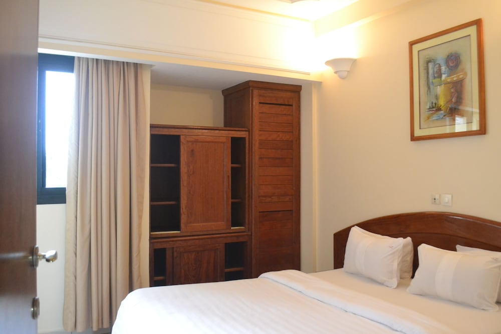 One night stay in a small (tiny?) room with all required commodities: A net at the window would allow to sleep with an open window. Front desk and room services are very good. The breakfast buffet is OK. Wifi is weak and unsteady. The hotel is very well situated in a quiet street of Akwa district.