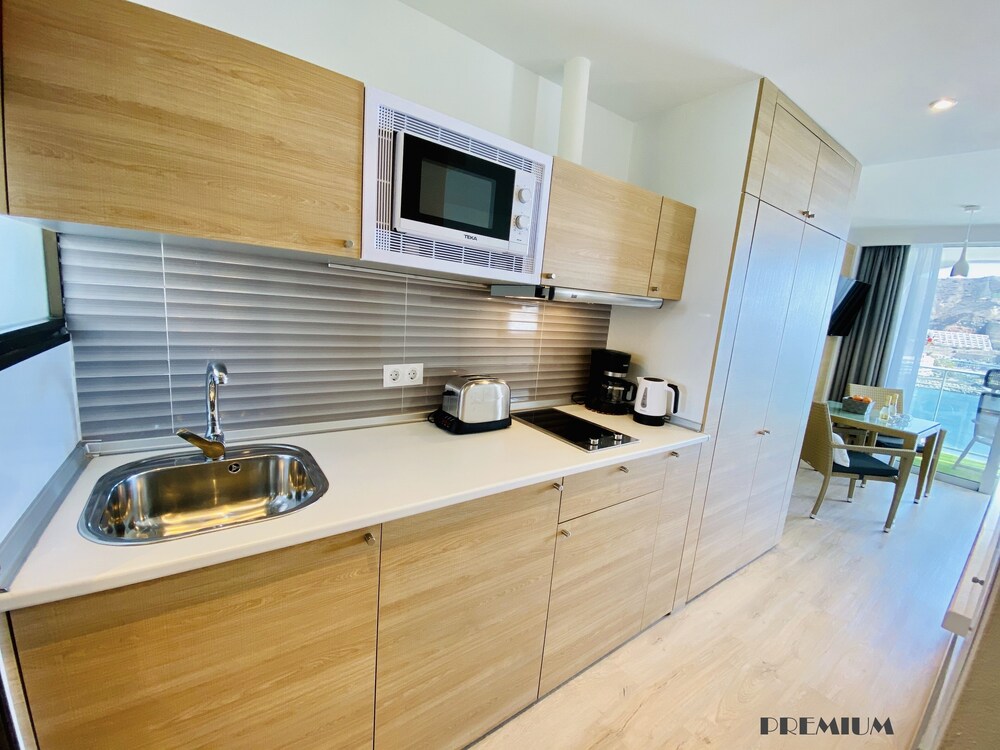 We had a lovely stay at this hotel. The room had everything we required and had a very nice large balcony overlooking the sea and bay at Puerto Rico. Close walking distance to bars and restaurants and a lovely private pool overlooking the sea.