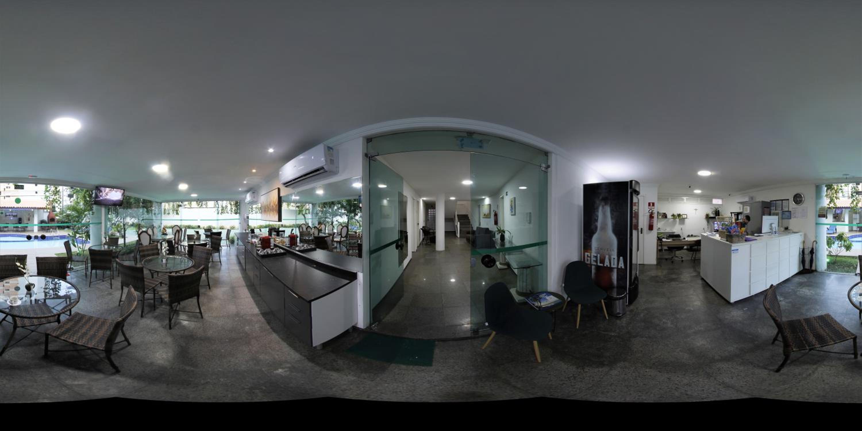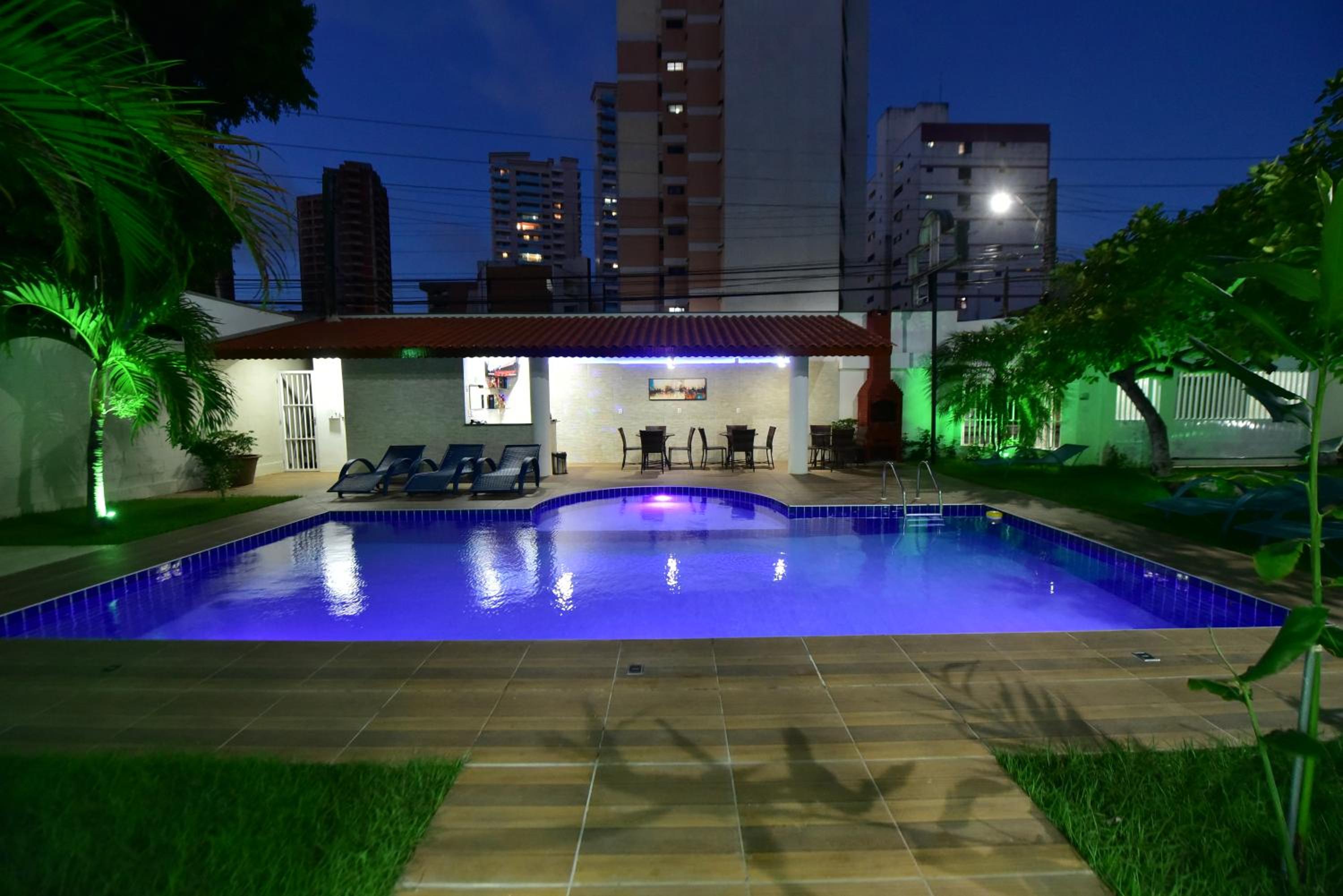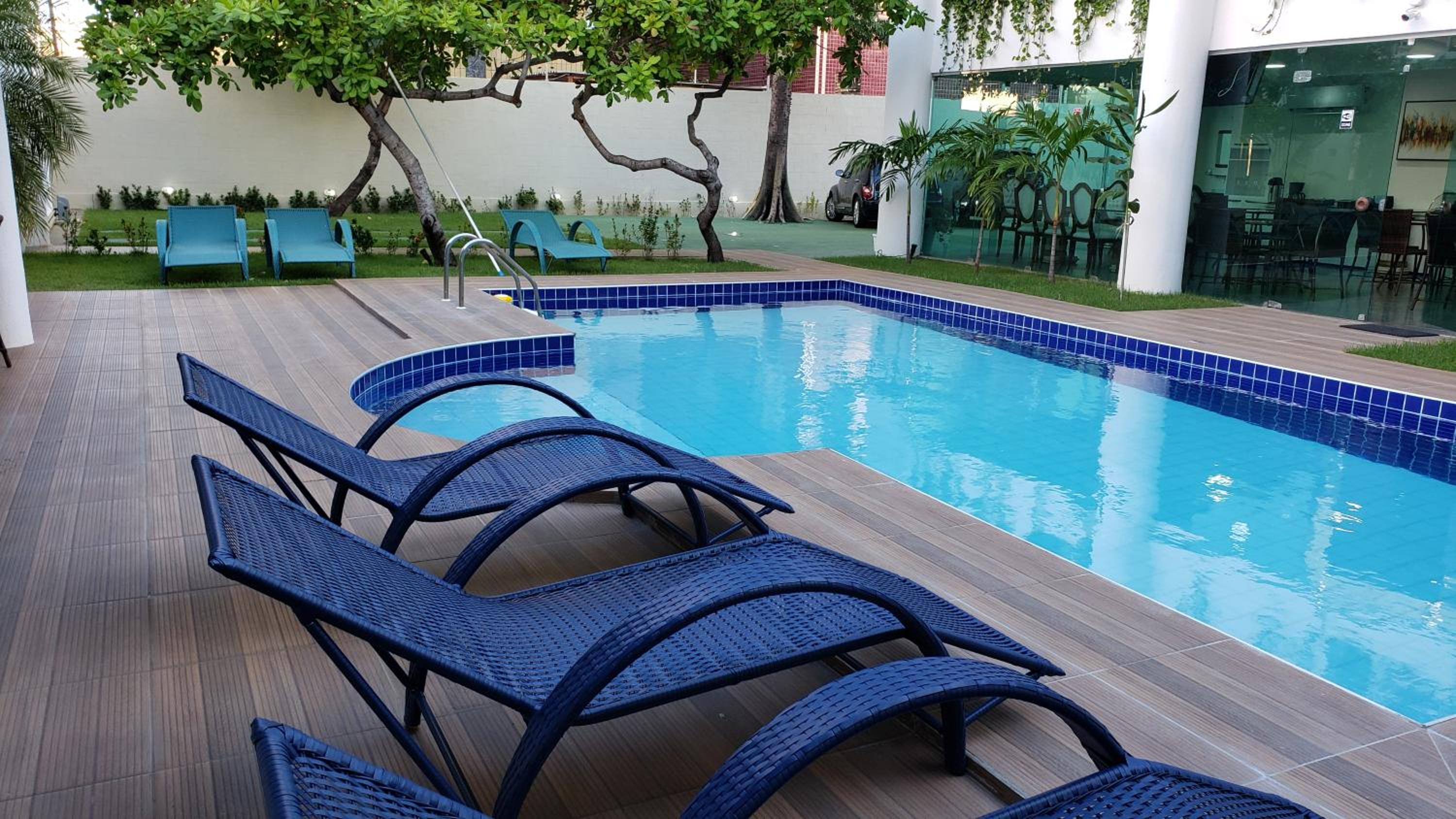 Outdoor Swimming Pool and Garden: Enjoy a refreshing dip in the outdoor swimming pool or relax in the lush garden at LIVE IN FORTALEZA HOTEL, providing a tranquil oasis for guests to unwind.