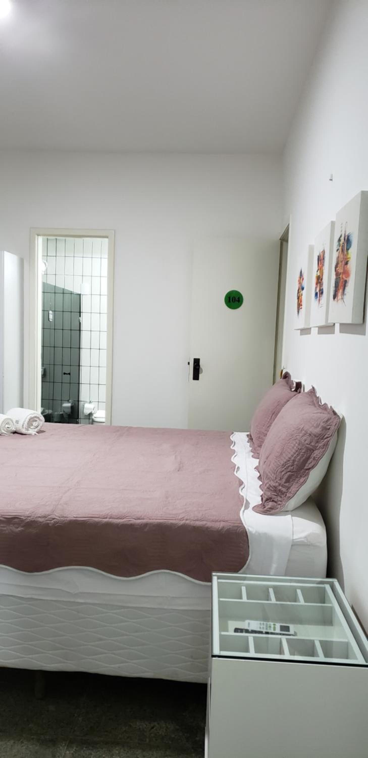Tamanho do banheiro e roupas de cama e toalhas velhas