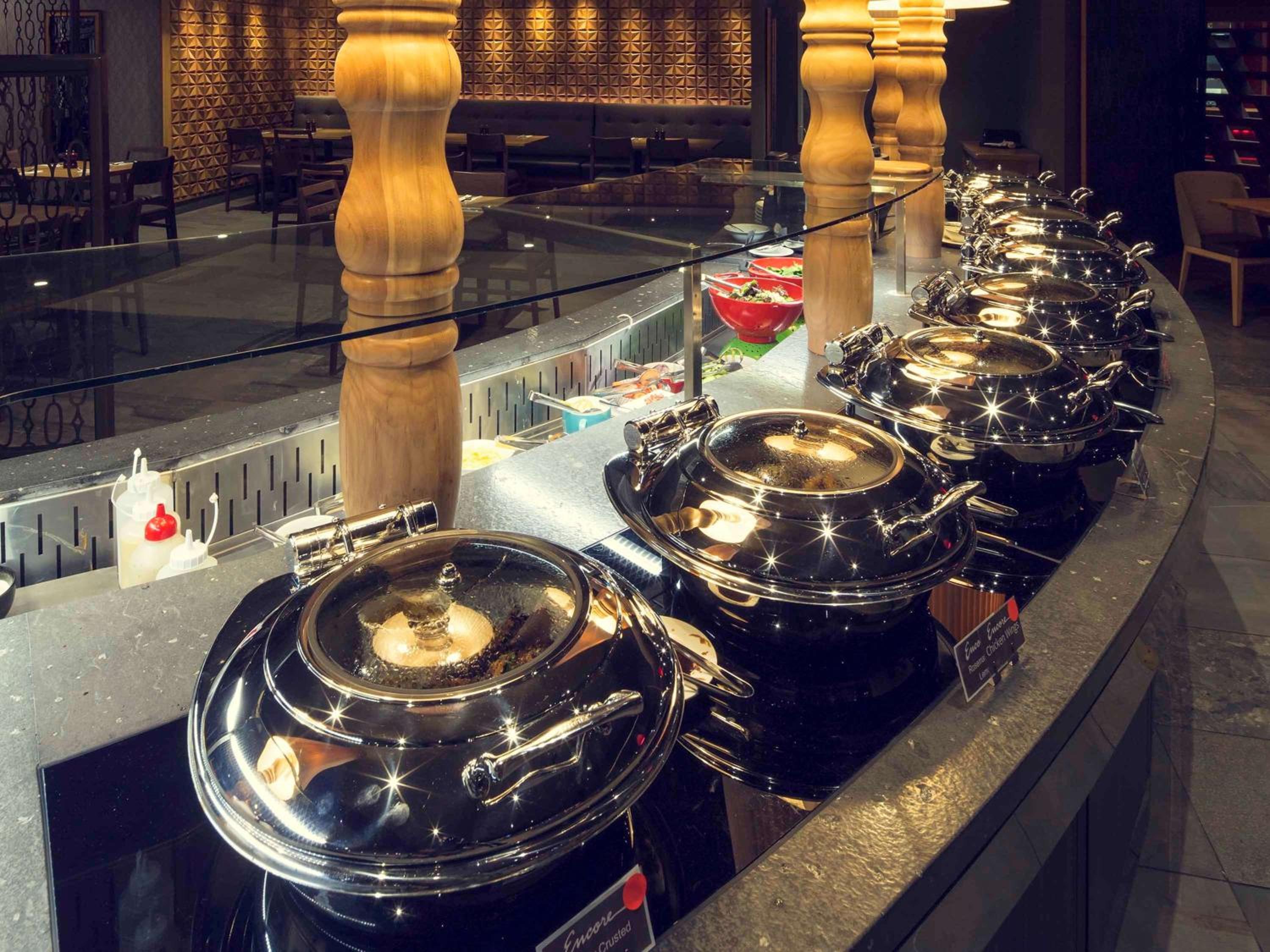 Guests can indulge in a variety of cuisines at Encore restaurant, from hot and cold breakfast options to Asian, Indian, and Mexican dishes. Cafe on the Point provides a cozy setting for coffee dates and sweet treats.