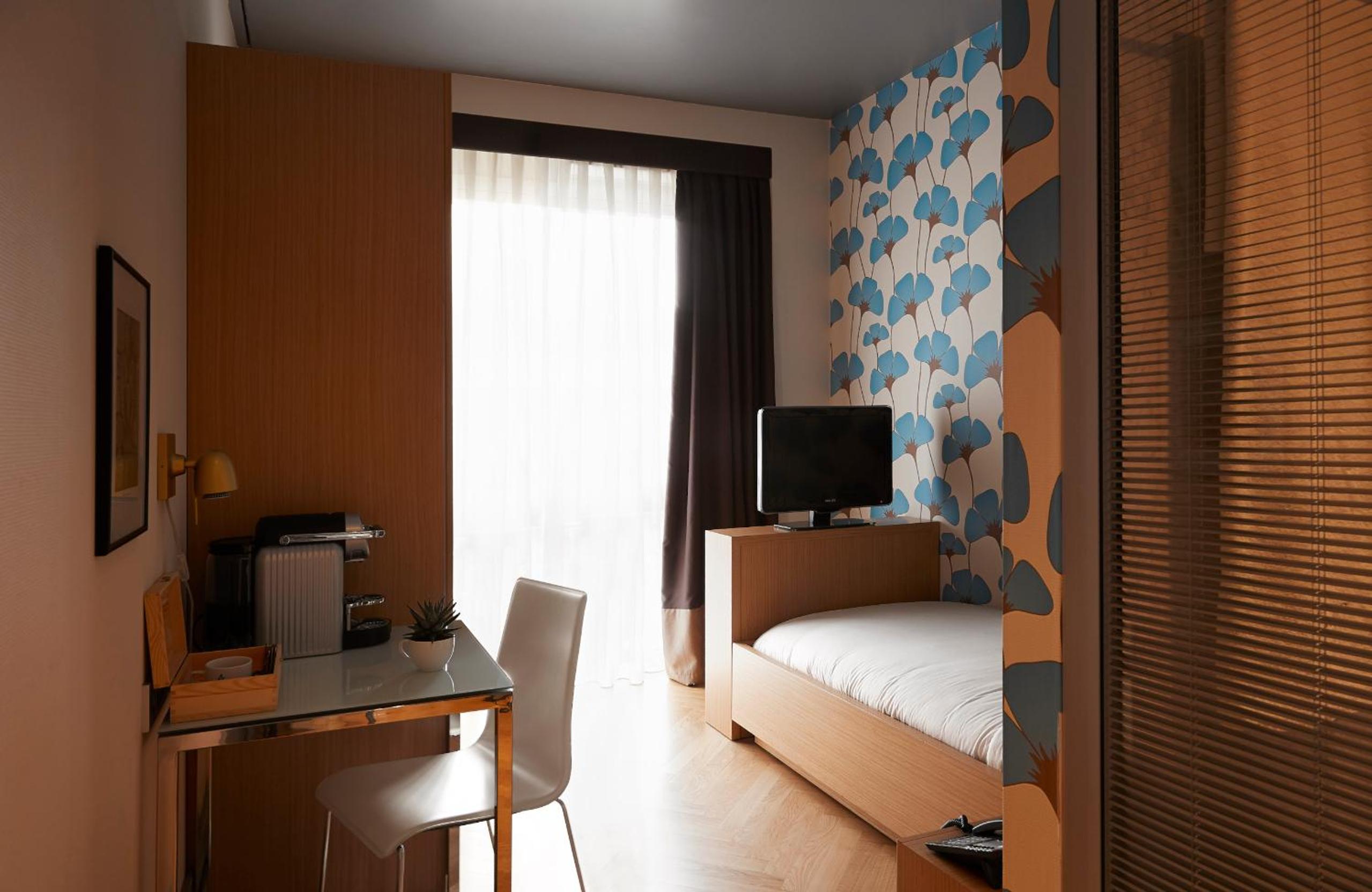 La cama también y el espacio en sí estaba bastante bien, nos daban dos cápsulas diarias de café que estaba más o menos pero bueno, el calentador de agua y un mini bar con una Coca Cola y una Fanta de cortesía. Súper cálido y en una buena ubicación la verdad, todo muy cerca a pie o en tren.