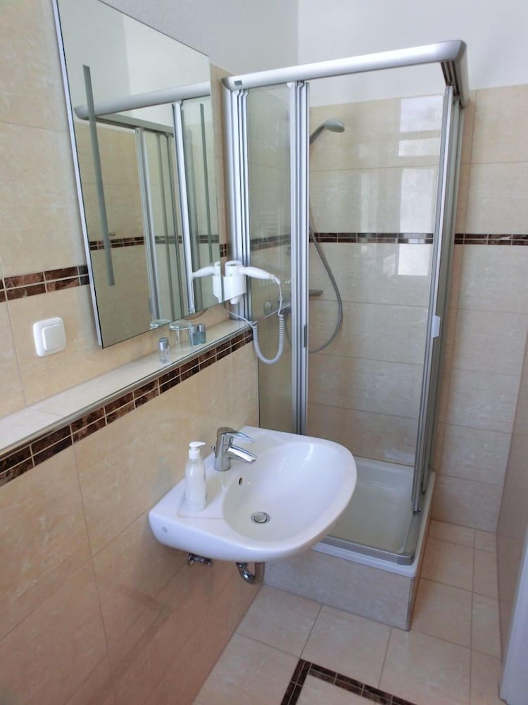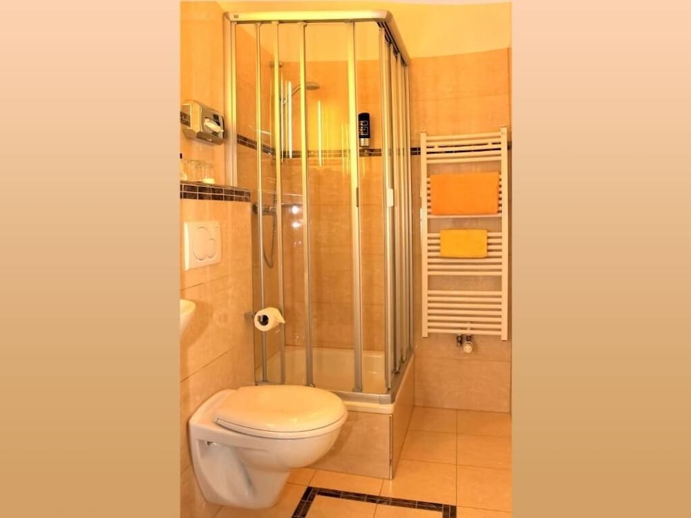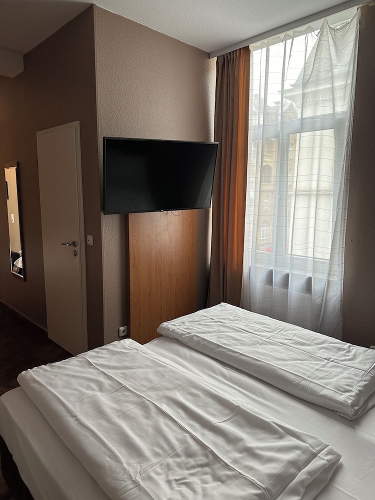 A small hotel above a restaurant, nice for a stay in Frankfurt. Situated in a small shopping square with bars, restaurants and shops. Hotel allowed us to pay for early check in and allowed left luggage if needed. Our floor had a communal cooking station with fridge, oven hob and sink which was useful. I would stay again as a good budget friendly hotel. Also a McDonald's across the street which is useful if returning back to the hotel late at night/ leaving early in the morning. Friendly check in staff.