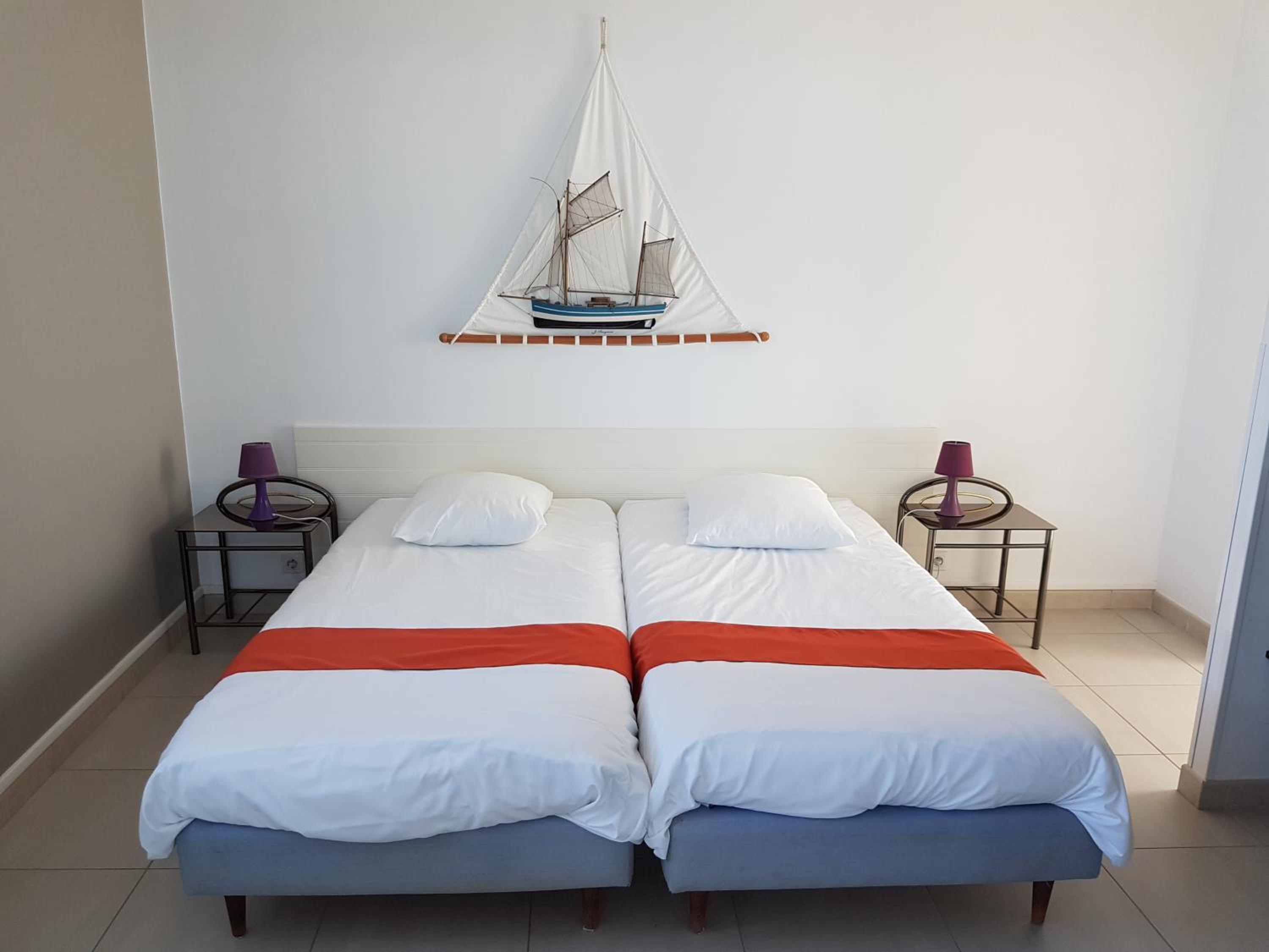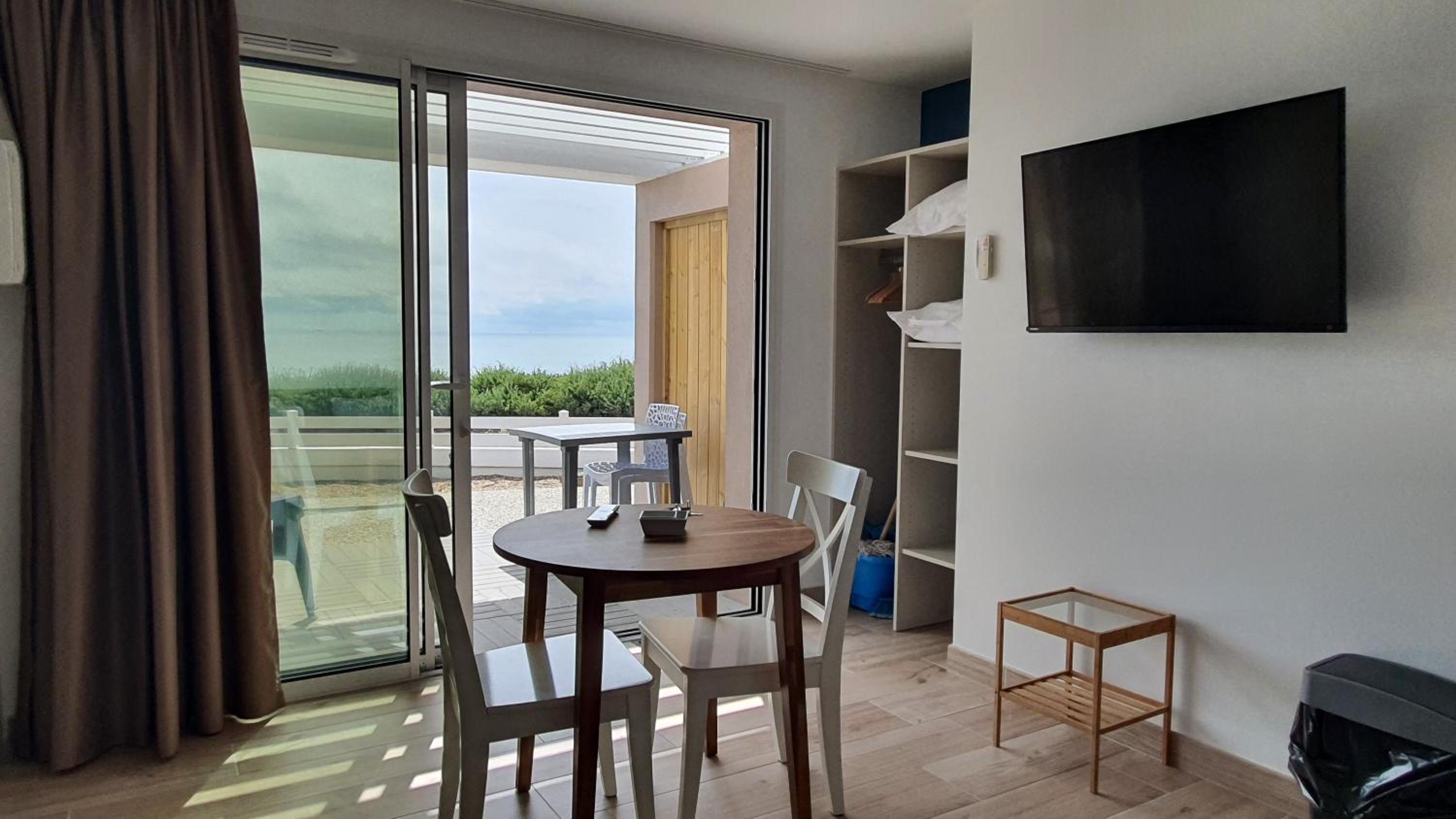Emplacement au bord de mer, gentillesse de l'accueil et chambre donnant sur un petit patio