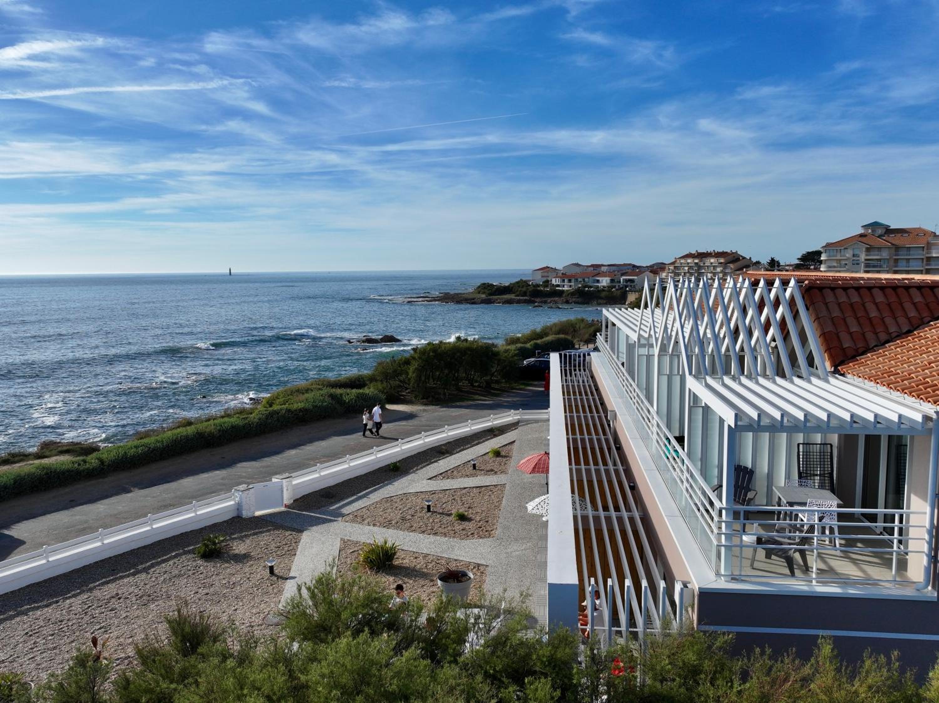 La Vigie Vacances is perfectly situated on the picturesque Côte Sauvage sea front in Les Sables-d'Olonne, offering breathtaking views of the ocean and the iconic Armandèche Lighthouse right from the terrace.