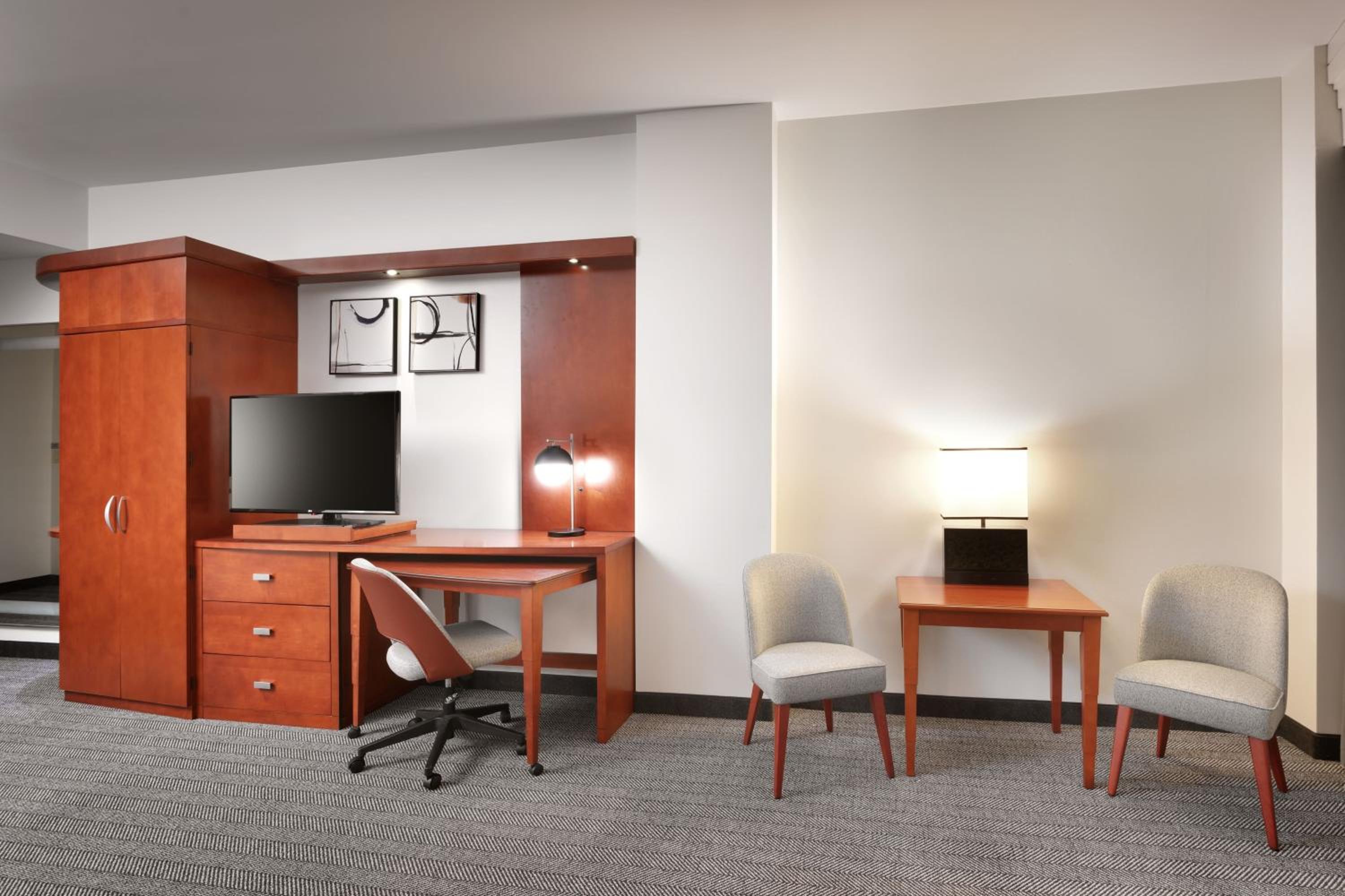 The location of the hotel is very convenient. The room set up is excellent. The bed and pillows exceeded expectations.