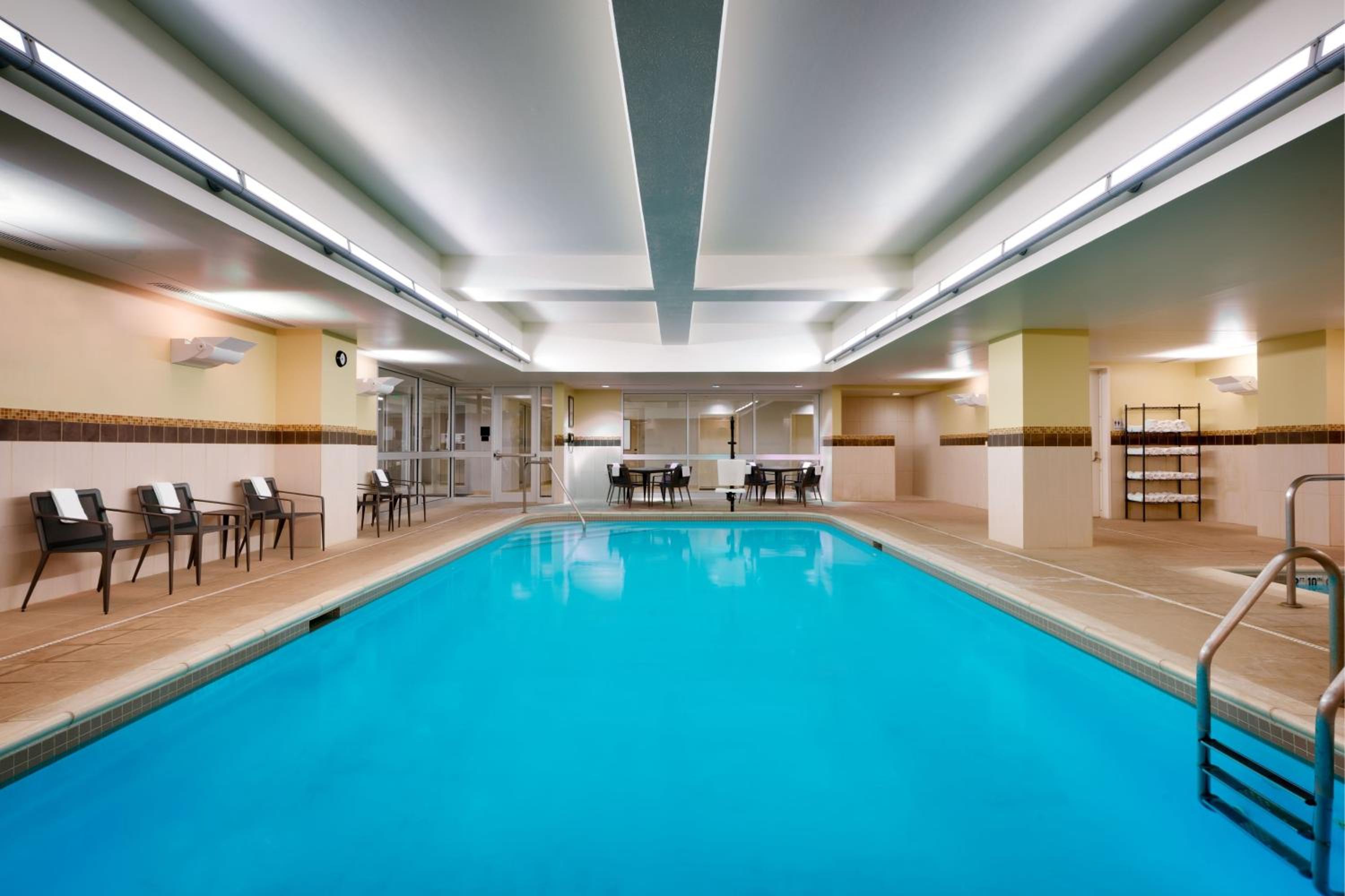 Guests can unwind in the heated indoor pool and hot tub or stay active at the fitness centre equipped with cardiovascular machines and free weights. The 24-hour reception offers complimentary newspapers and coffee, ensuring a comfortable stay.