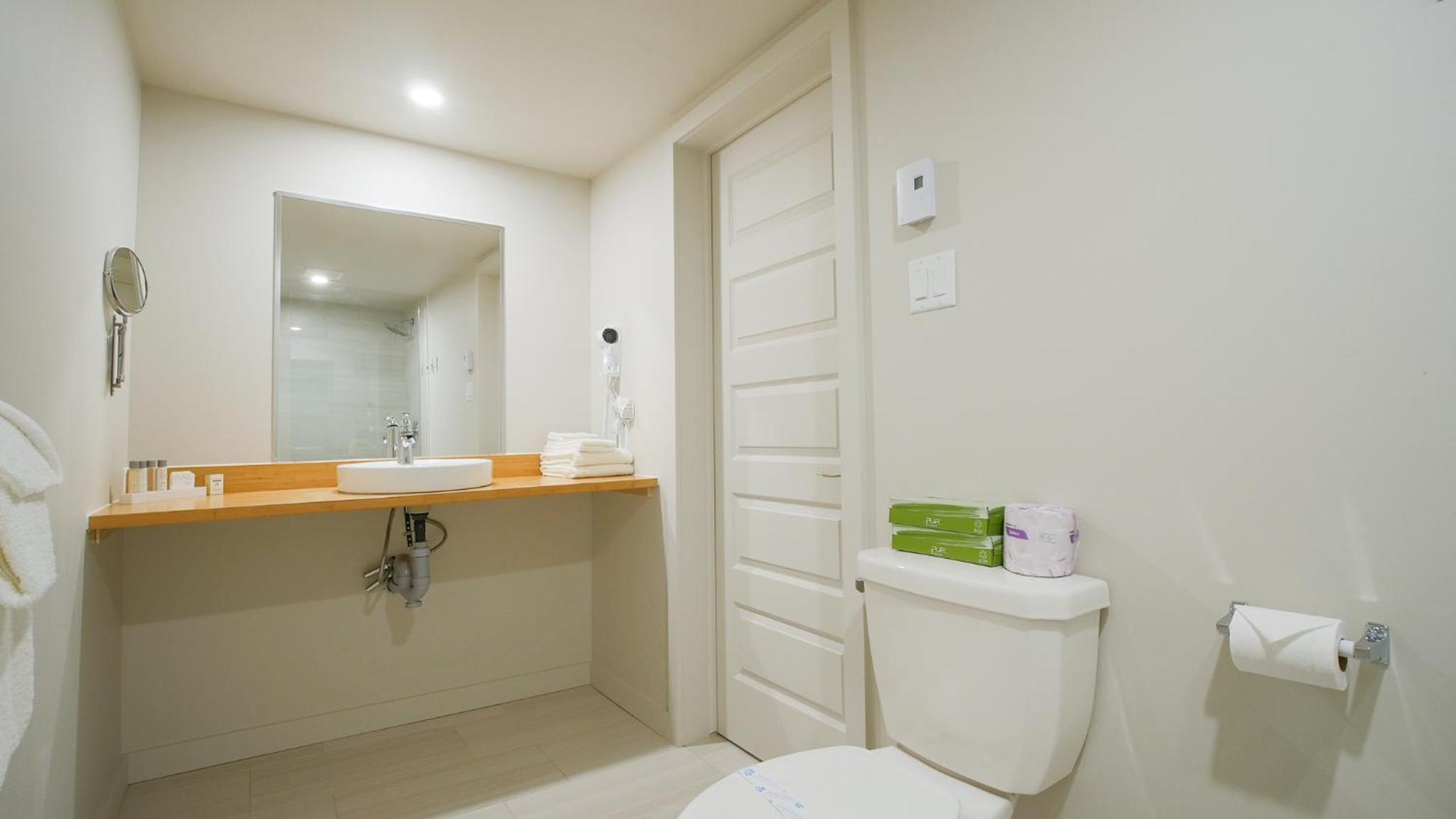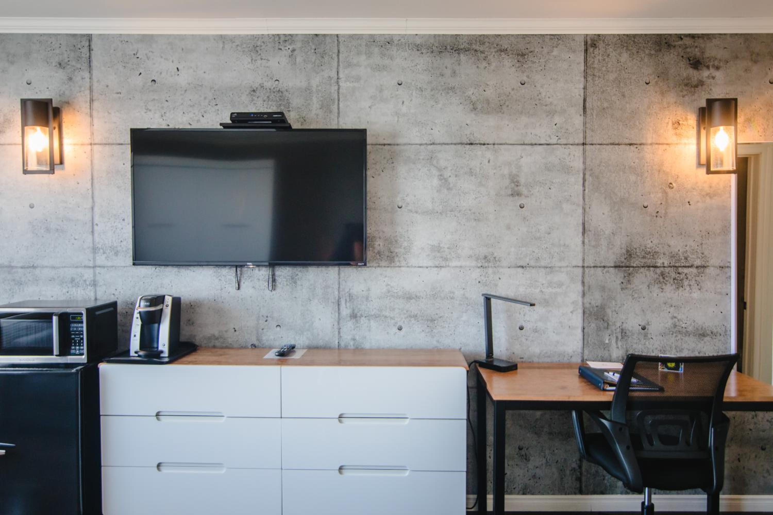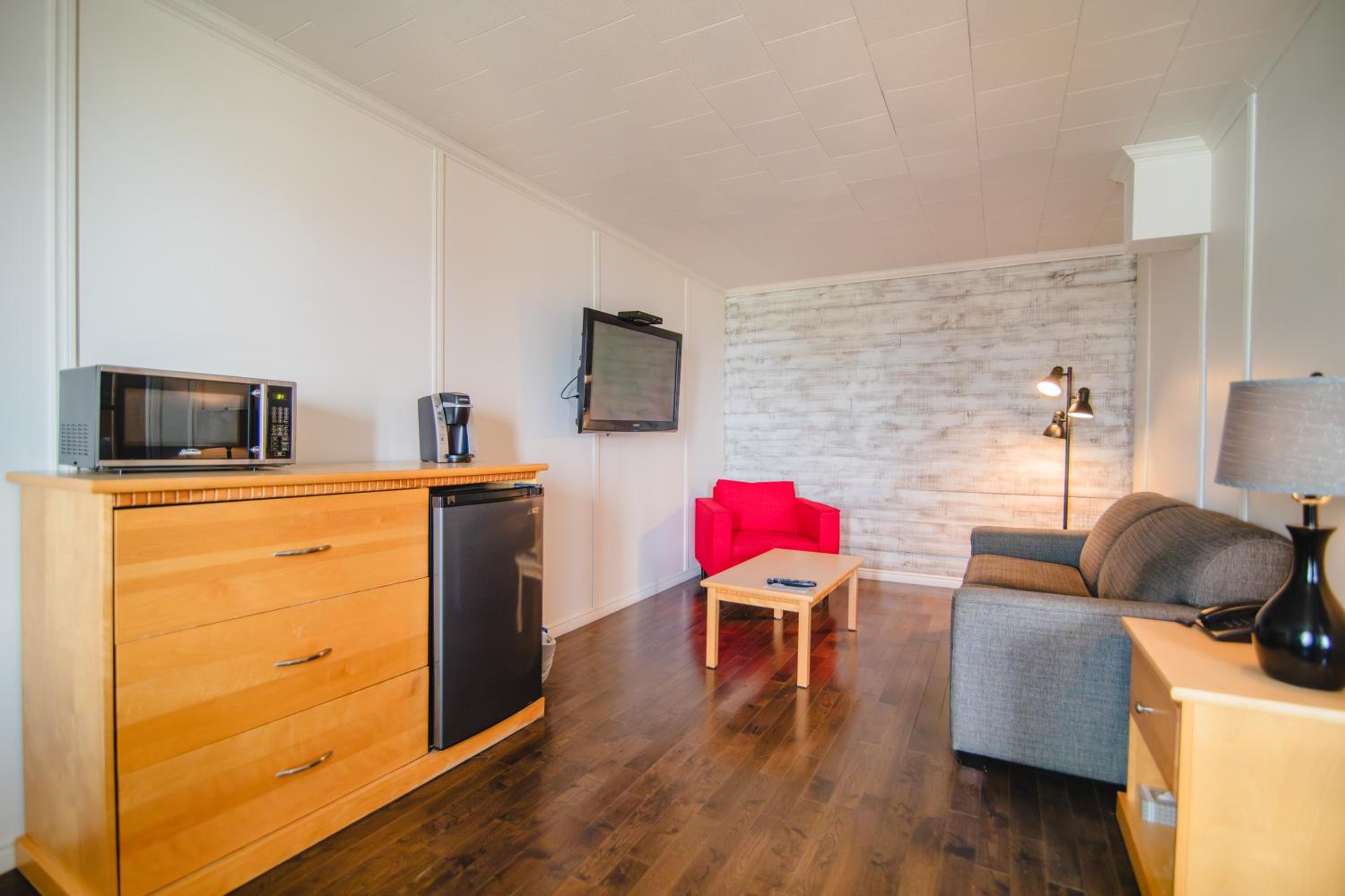 Hotel correct pour une nuit de passage, a été rénové depuis la dernière fois où on était allé. Propre. Contient frigo, micro onde, keurig.