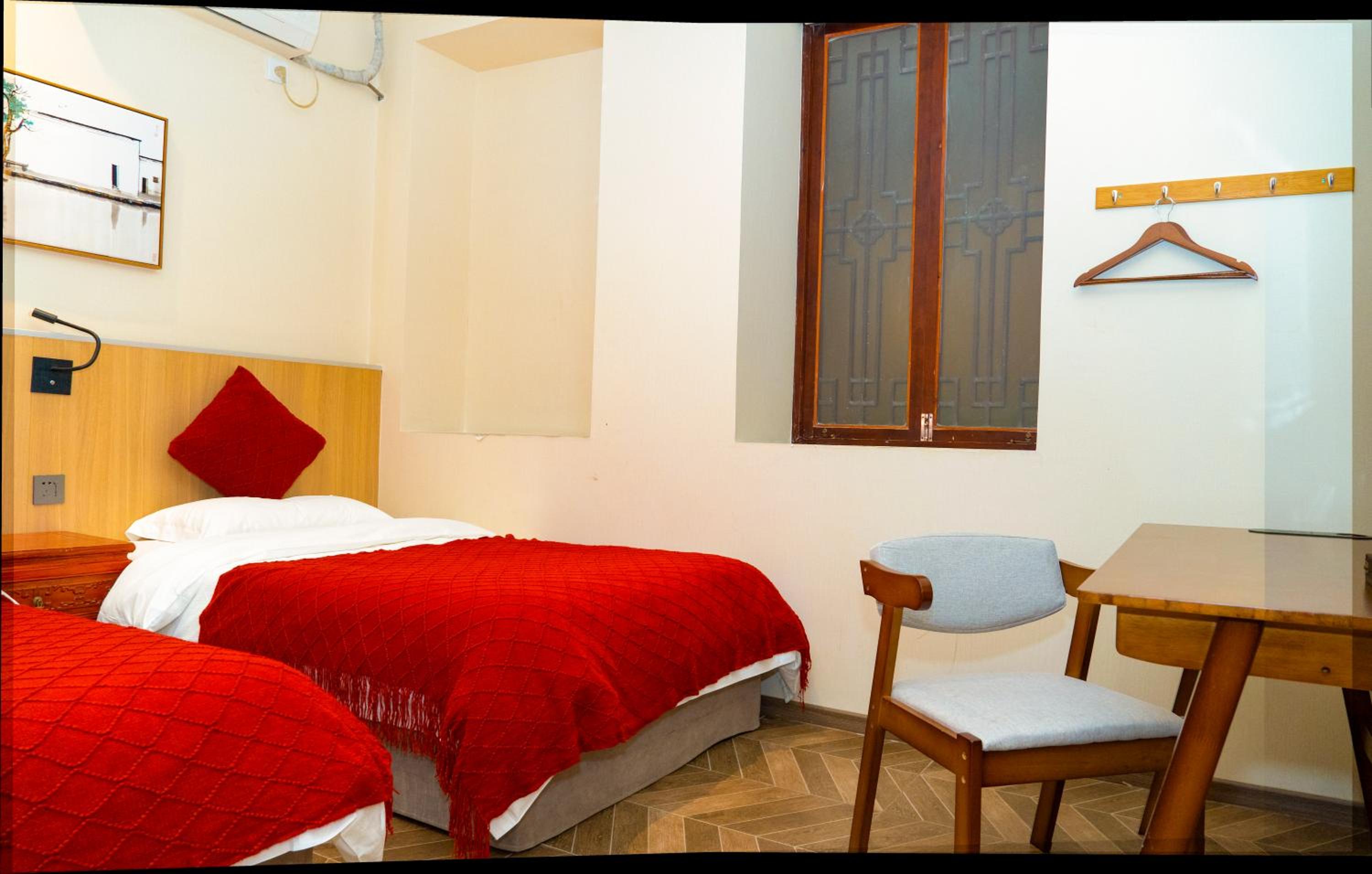 Отличное расположение: в центре, на улице, где не слышны звуки обычной громкой жизни. Рядом в 3-6 минутах ходьбы две станции метро разных веток. В пешей доступности магазин "русский сувенир", в котором есть привычные русские продукты (когда заскучаешь). В ста метрах широкая пешеходная улица с бутафорским трамваем, который весь день для атмосферы медленно ездит по ней. Персонал: всегда готов придти на выручку, если есть непонятные моменты. Полотенца менялись ежедневно. Вода - две бутылки 0.5 каждый день. Тапочки есть, в том числе одноразовые, набор для чистки зубов. Антураж: атмосфера китайского дворика внутри отеля, фонарики, вайб...