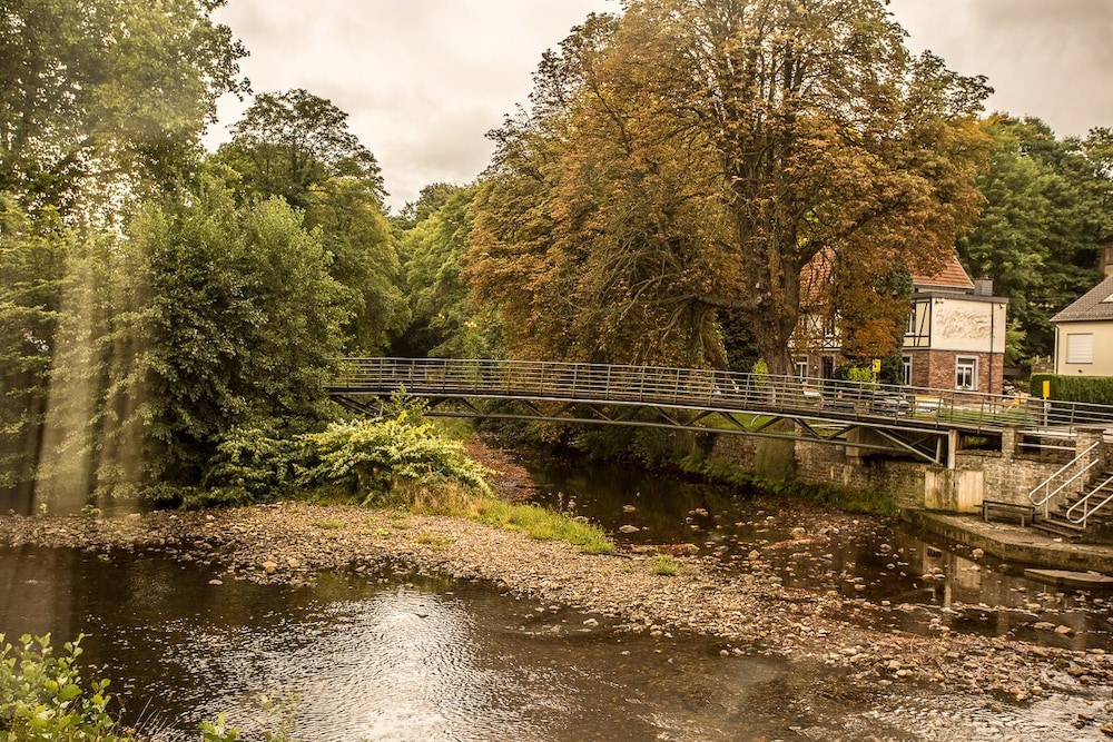 This large Best Western hotel is in the lower part of Eupen. It's a stiff walk up to the Upper Town, the rail station and most activities. Staff were friendly and helpful. I was given perhaps the best room despite paying a moderate Expedia price. This had a huge bedroom and bathroom, and balcony overlooking the junction of the River Weser and a heavily wooded stream. Most picturesque, ducks paddling past. Much of the decor was unmodernised 1970s. Fridge did not work, minibar list but no minibar. Traffic over the bridge was noisy. On balance a good choice.