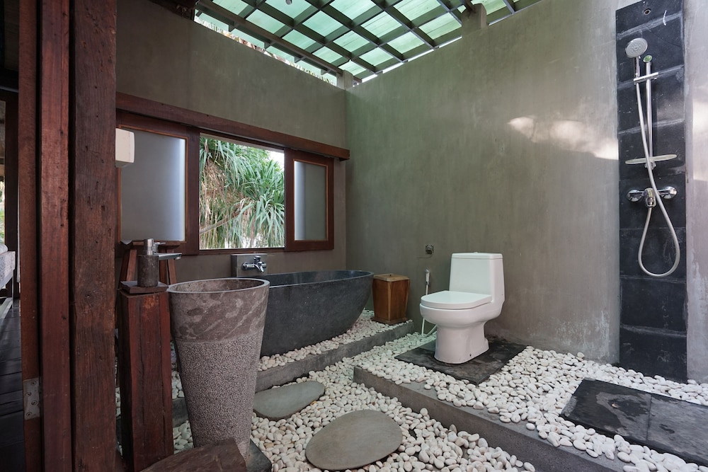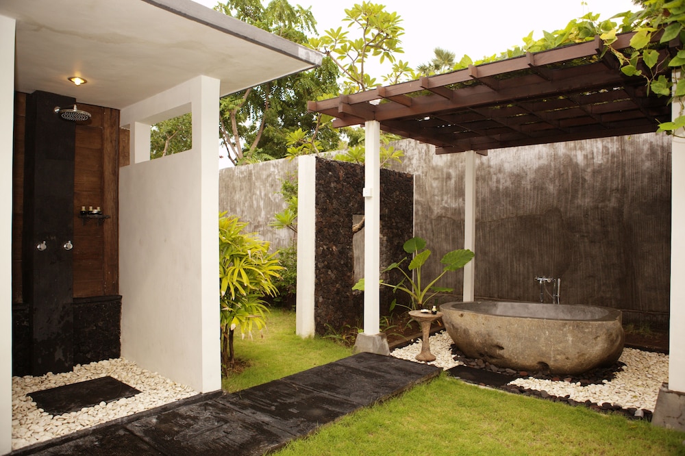 Ê la seconda volta che alloggiamo in questo hotel ed è stata come l’altra volta una bella esperienza. Abbiamo prenotato la camera con la piscina privata e giardino. L’hotel si trova in un contesto naturale bellissimo lontano dai rumori e dalla confusione. Lo staff è fantastico, tutti gentilissimi e premurosi in particolare Hari che accoglie gli ospiti, Cicik che è addetta alla ristorazione e Ayu che aiuta. Sono persone davvero speciali. La pulizia è eccellente addirittura cambiano le lenzuola ogni giorno (non sarebbe proprio necessario). Colazione e cena sul patio della nostra villetta. Colazione abbondante alla carotte e cena con vari piatto della cucina indonesiana o pesce alla griglia. Tutto ottimo. Bisogna però essere consapevoli che il luogo è di puro relax, si può passeggiare sulla spiaggia completamente deserta di ciottoli vulcanici e corallo bianco però se il mare è mosso non è facile fare il bagno. Per noi non era importante. Ciò che a noi è piaciuto è la bellezza è l’energoa Del luogo. Ci torneremo per la terza volta. Un grazie a tutto lo staff.