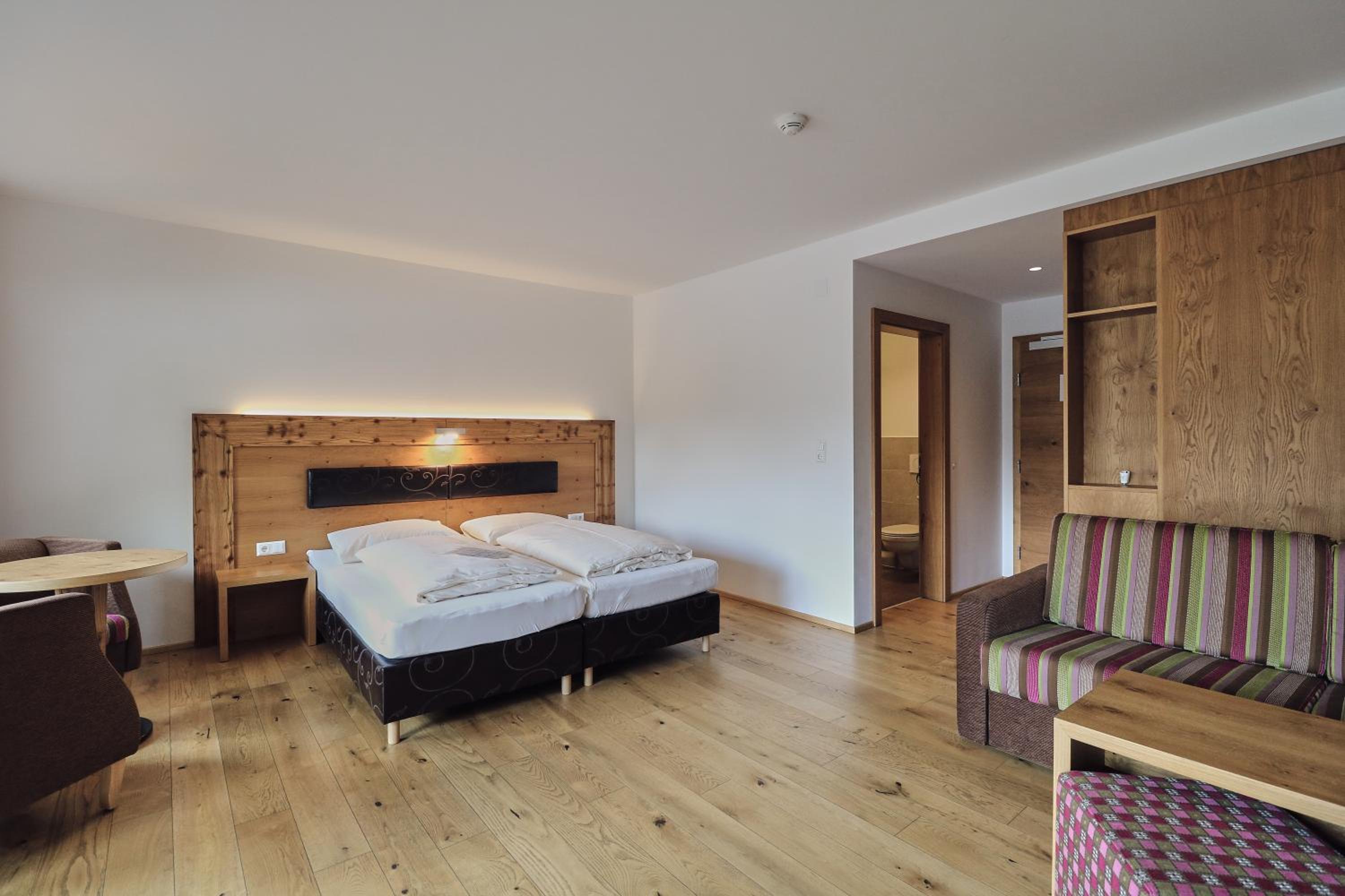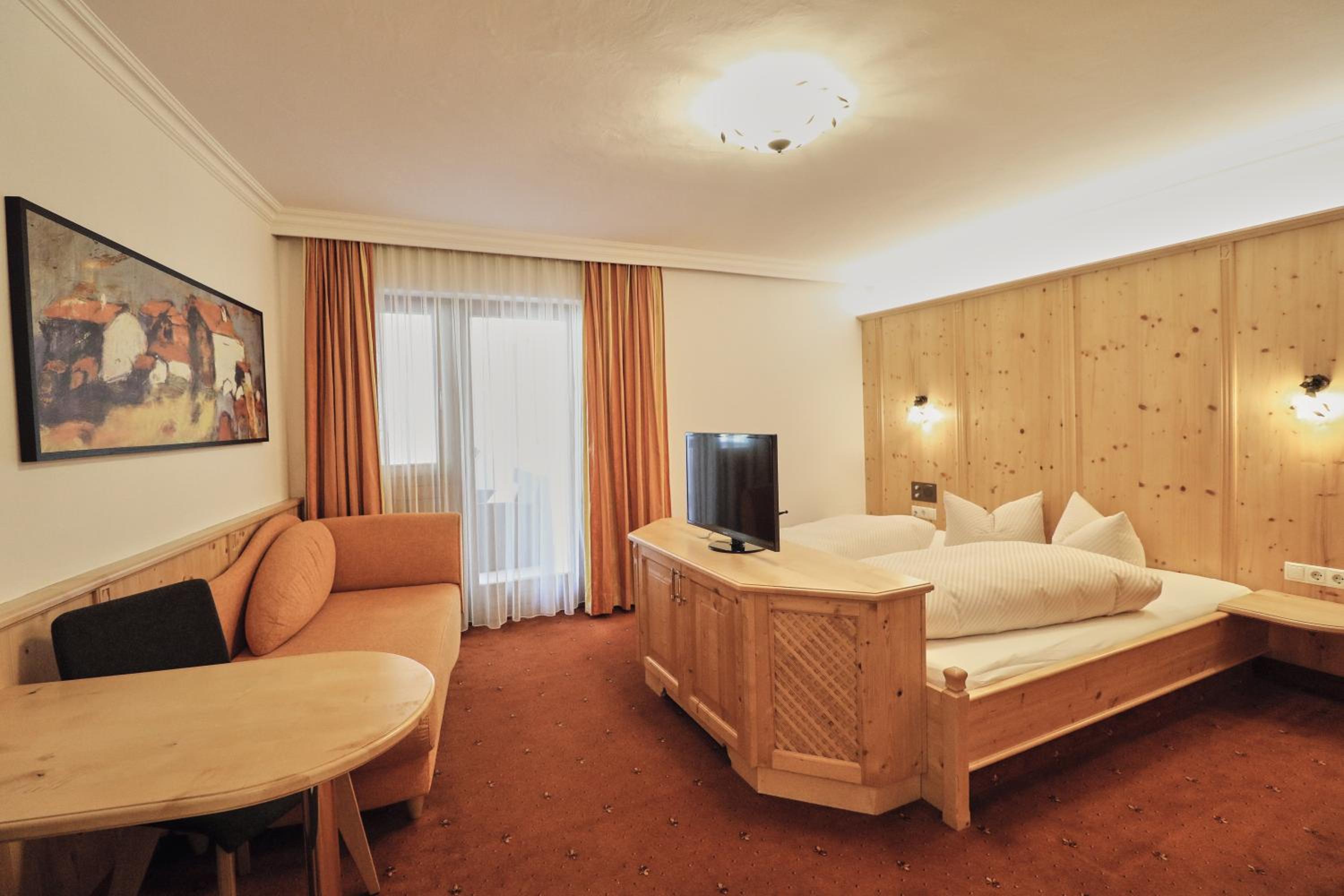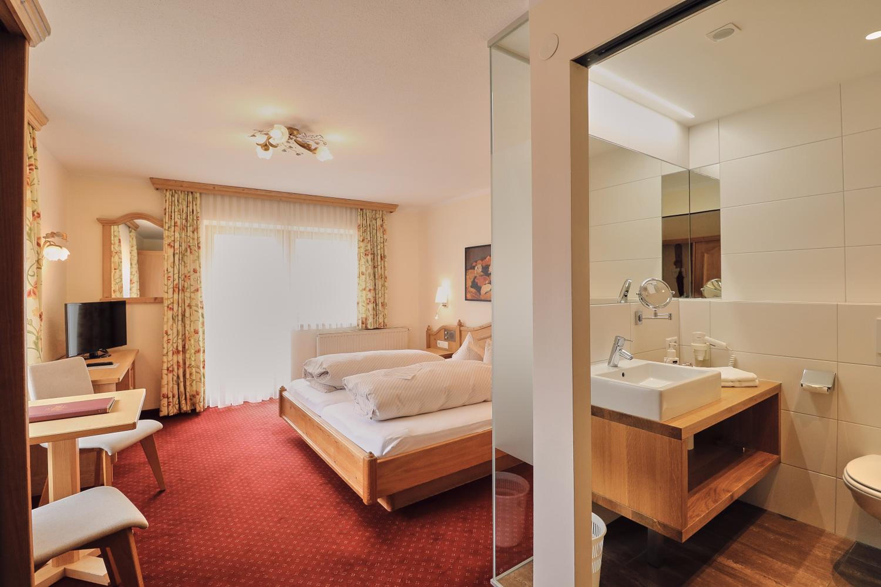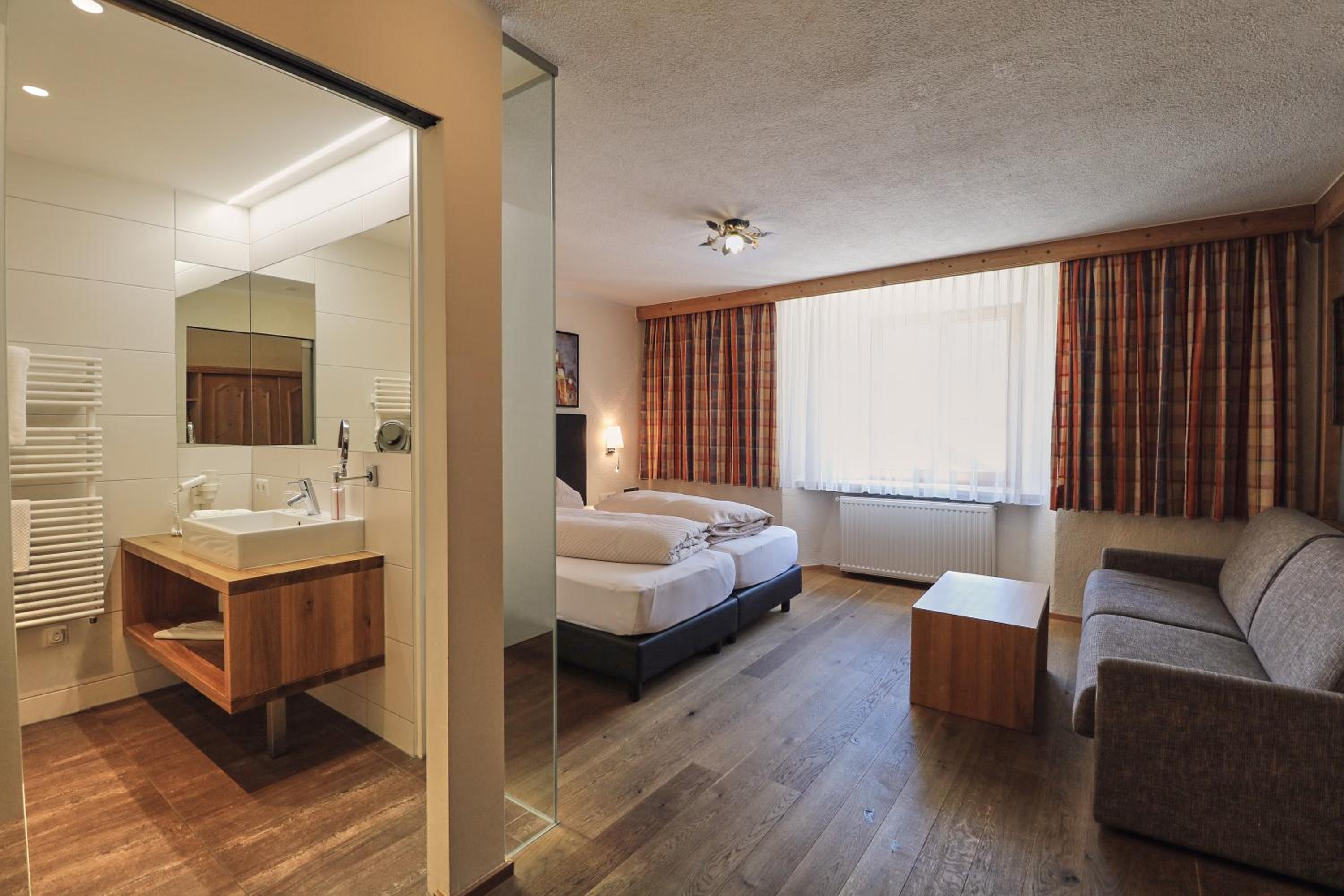 Schönes großes Zimmer mit modernem Bad und ebenerdiger Dusche. Vom Balkon Blick auf den beheizten Pool und die Berge. Außergewöhnlich großer Skiraum mit viel Platz an der Skistiefelheizung. Moderner Wellnessbereich im Aktivhaus. Das Personal war sehr aufmerksam und durchweg freundlich. Hervorragendes Frühstücksbuffet mit vielfältiger Auswahl. Da findet jeder etwas nach seinem Geschmack. Bei gebuchter Halbpension gibt es jeden Abend ein leckeres Salatbuffet, zwei Vorsuppen zur Wahl, Auswahl zwischen vier Hauptgängen und zum Abschluss ein Dessert. Es hat jeden Abend vorzüglich geschmeckt. Die Speisen wurden liebevoll zubereitet und hübsch angerichtet. Wir hatten eine wunderbare Urlaubswoche.