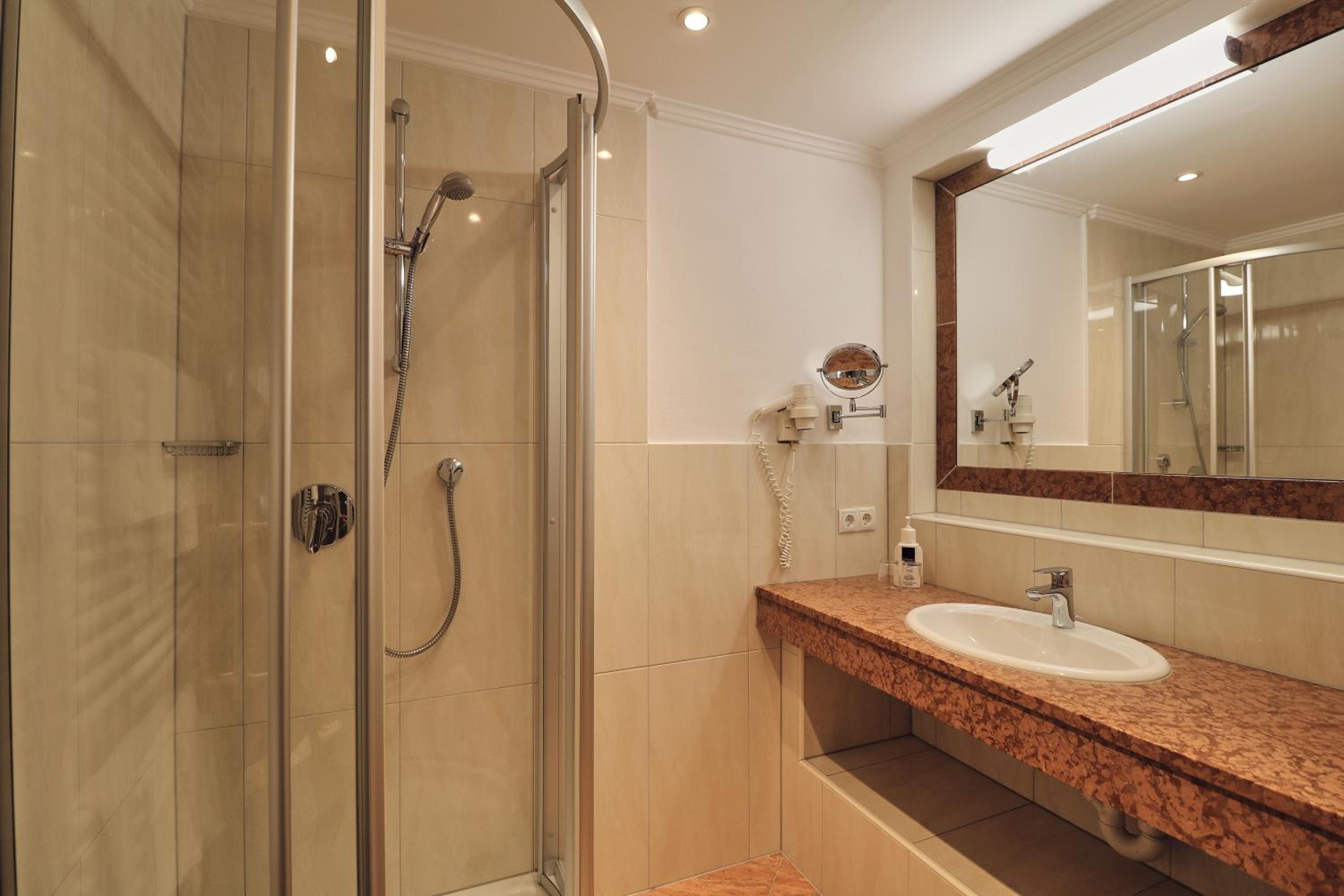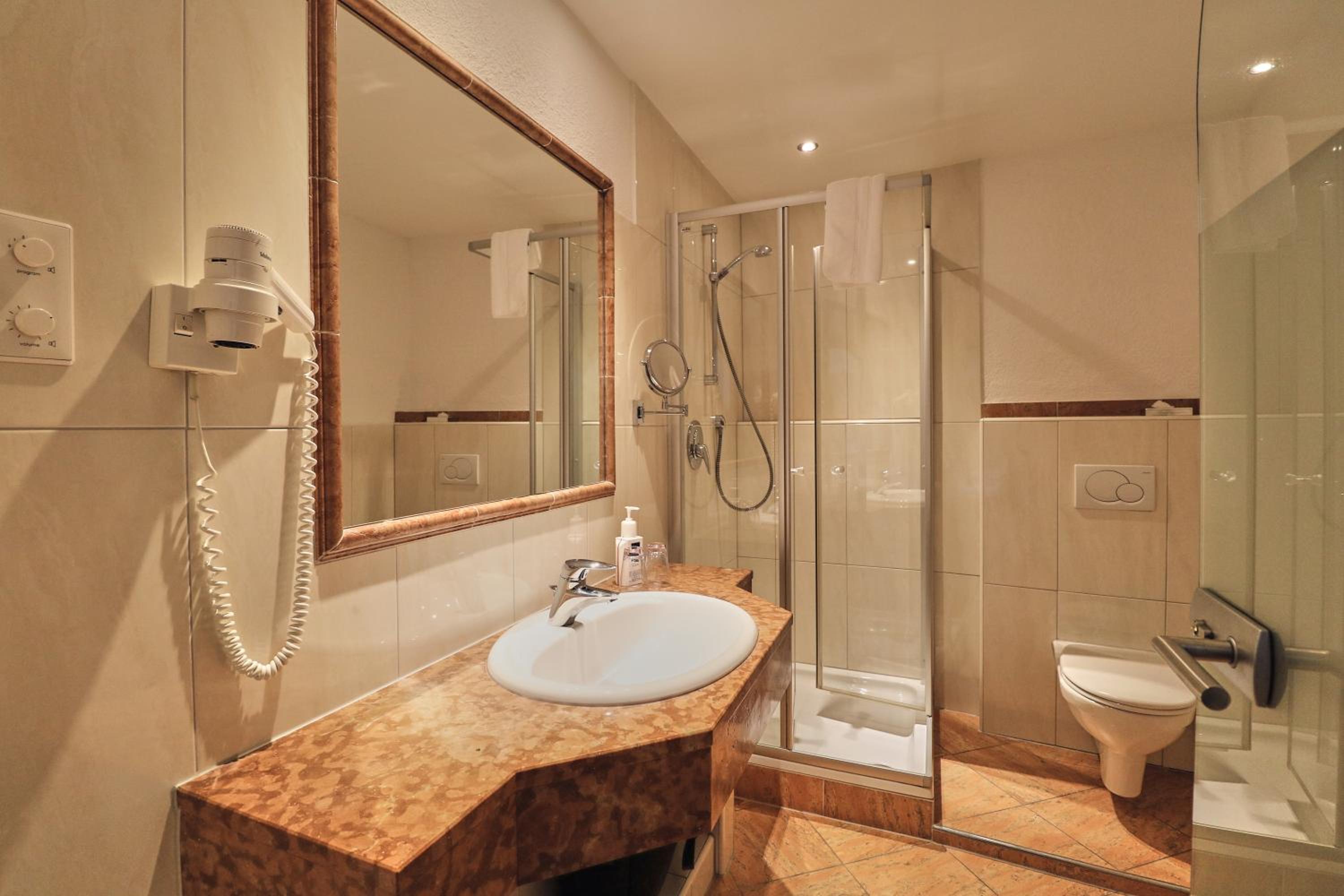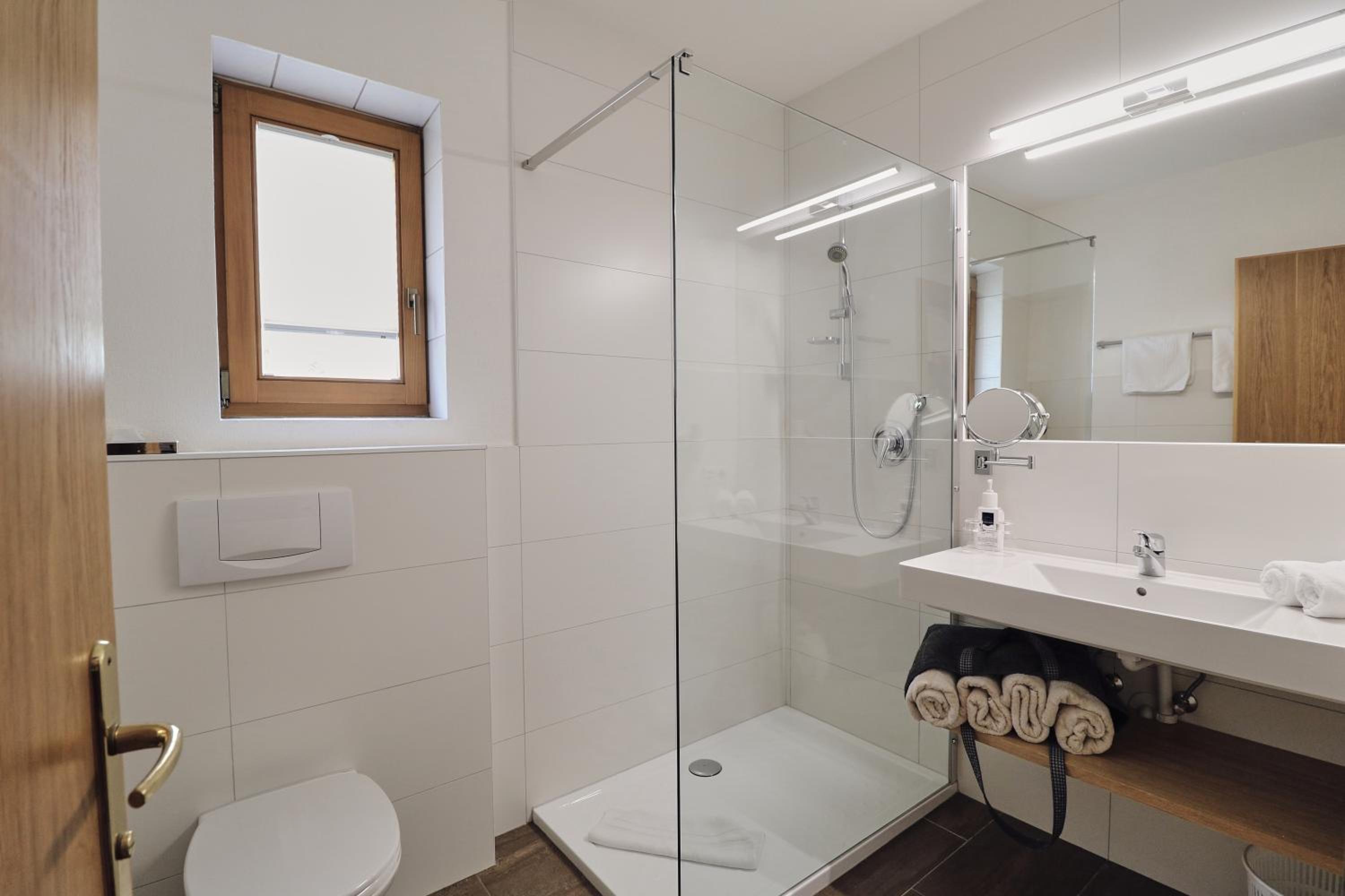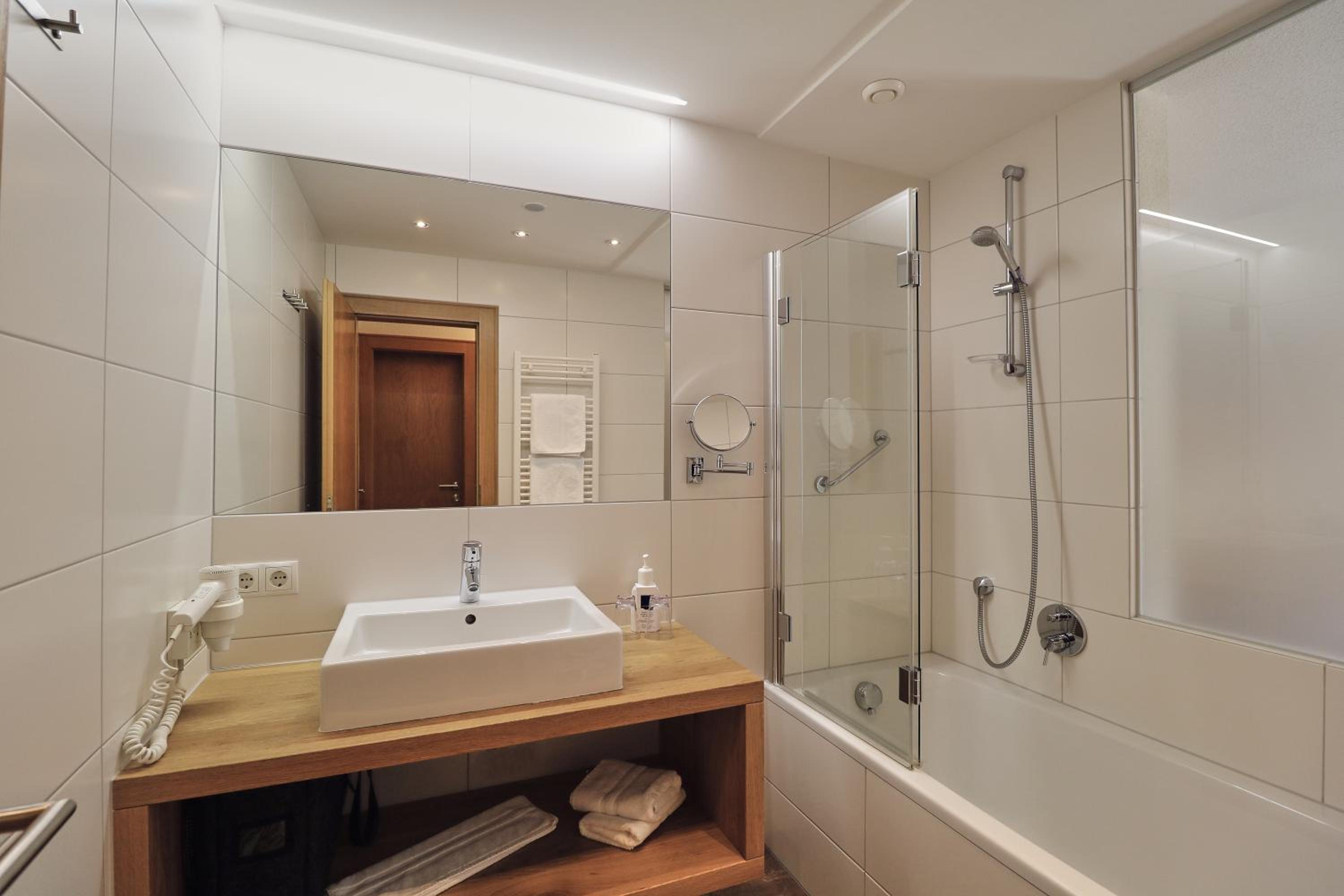 Schönes großes Zimmer mit modernem Bad und ebenerdiger Dusche. Vom Balkon Blick auf den beheizten Pool und die Berge. Außergewöhnlich großer Skiraum mit viel Platz an der Skistiefelheizung. Moderner Wellnessbereich im Aktivhaus. Das Personal war sehr aufmerksam und durchweg freundlich. Hervorragendes Frühstücksbuffet mit vielfältiger Auswahl. Da findet jeder etwas nach seinem Geschmack. Bei gebuchter Halbpension gibt es jeden Abend ein leckeres Salatbuffet, zwei Vorsuppen zur Wahl, Auswahl zwischen vier Hauptgängen und zum Abschluss ein Dessert. Es hat jeden Abend vorzüglich geschmeckt. Die Speisen wurden liebevoll zubereitet und hübsch angerichtet. Wir hatten eine wunderbare Urlaubswoche.