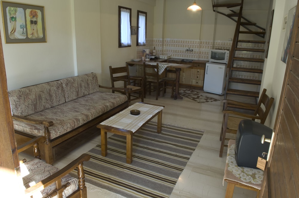 Immerse yourself in the serene beauty of South Pelion at Magani Apartments & Maisonettes. Seaside Bliss: With a private beach and bicycles for rent, indulge in sun-soaked relaxation and seaside adventures. Entertainment Galore: Enjoy complimentary Wi-Fi, an arcade room, and a cozy bar/lounge. Comfort & Convenience: Feel at home in air-conditioned rooms with kitchens, balconies, and daily housekeeping. Book your stay now and make unforgettable memories by the sea at Magani Apartments & Maisonettes.