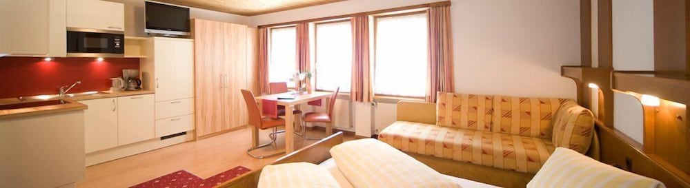 This friendly hotel is next to Almrausch apreski bar which is also next to the village run. It also has a bus stop right in front of it and another 2 stops just three minutes away which all take you to the double decker ski lift.