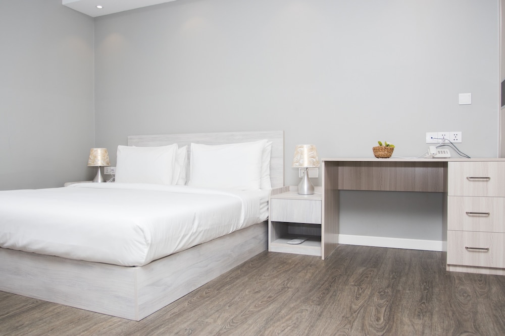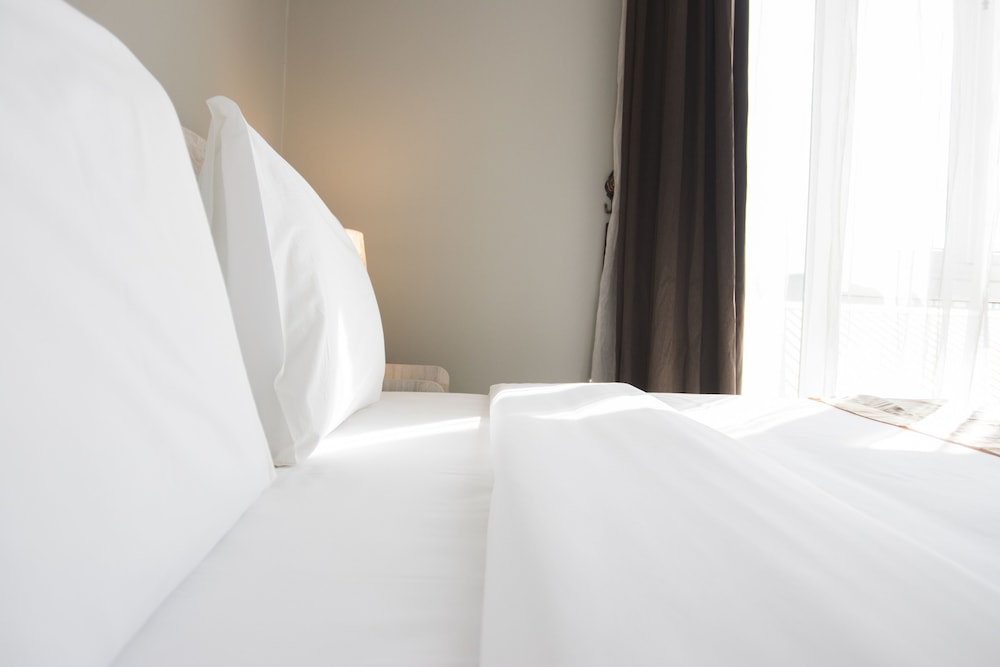 My room door alarm would not turn off when I was showed to my room. The window would not lock, and when tried to slide open by the hotel assistant, the entire window came off its railing and landed on the balcony outside. The curtain and walls were dirty, and I asked for another room ( alarm still sounding). Reception got another room key for a room opposite side of the corridor. The floor had obviously not been swept/vacuumed with dead mosquitoes squashed on the wall by the television ( which was not working). I locked the hotel safe but it would not unlock. I called reception to report the television, safe that would not unlock and opposite room alarm that was still sounding. Approximately 45 minutes later maintenance came to change batteries on TV remote, and plug TV into alternate power point which eventually got it working. The safe could not be opened ( fortunately I had not yet placed valuables in the safe), and carried my valuables to dinner out of the room. The alarm was eventually switched off. Sheets and towels were clean. The less said about the breakfast the following morning the better ( The New Yorker), fortunately I had fruit back in my hotel room I could enjoy after breakfast. The pool was nice, however the room reminded me of a school hostel. I would not recommend this as a stay, and would have checked out the following day if I was not only staying for one night.
