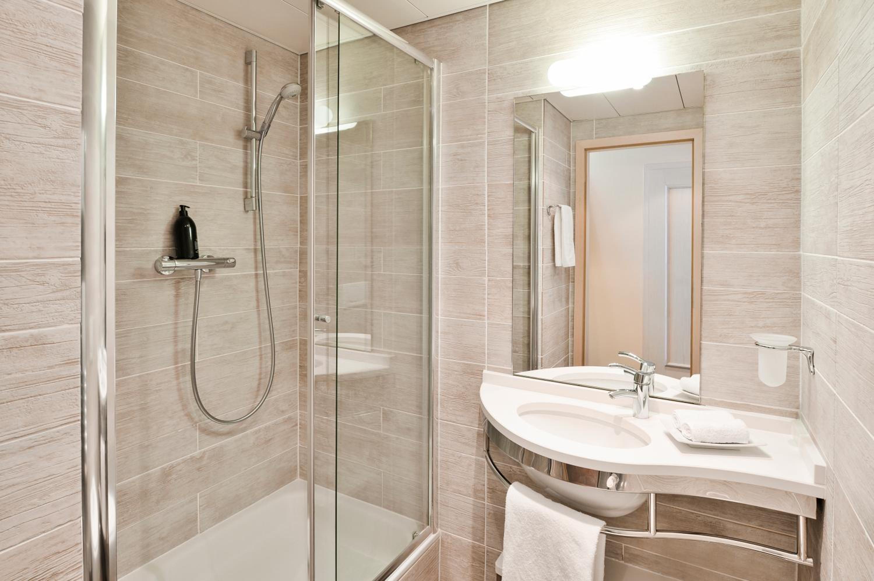 The bathtub had a high side wall to climb over to shower; very slippery. Only basic shower / hand soap - e.g., no balsam. The bed is on the shorter side; OK for me below 170 cm, too short for my husband above 190 cm.