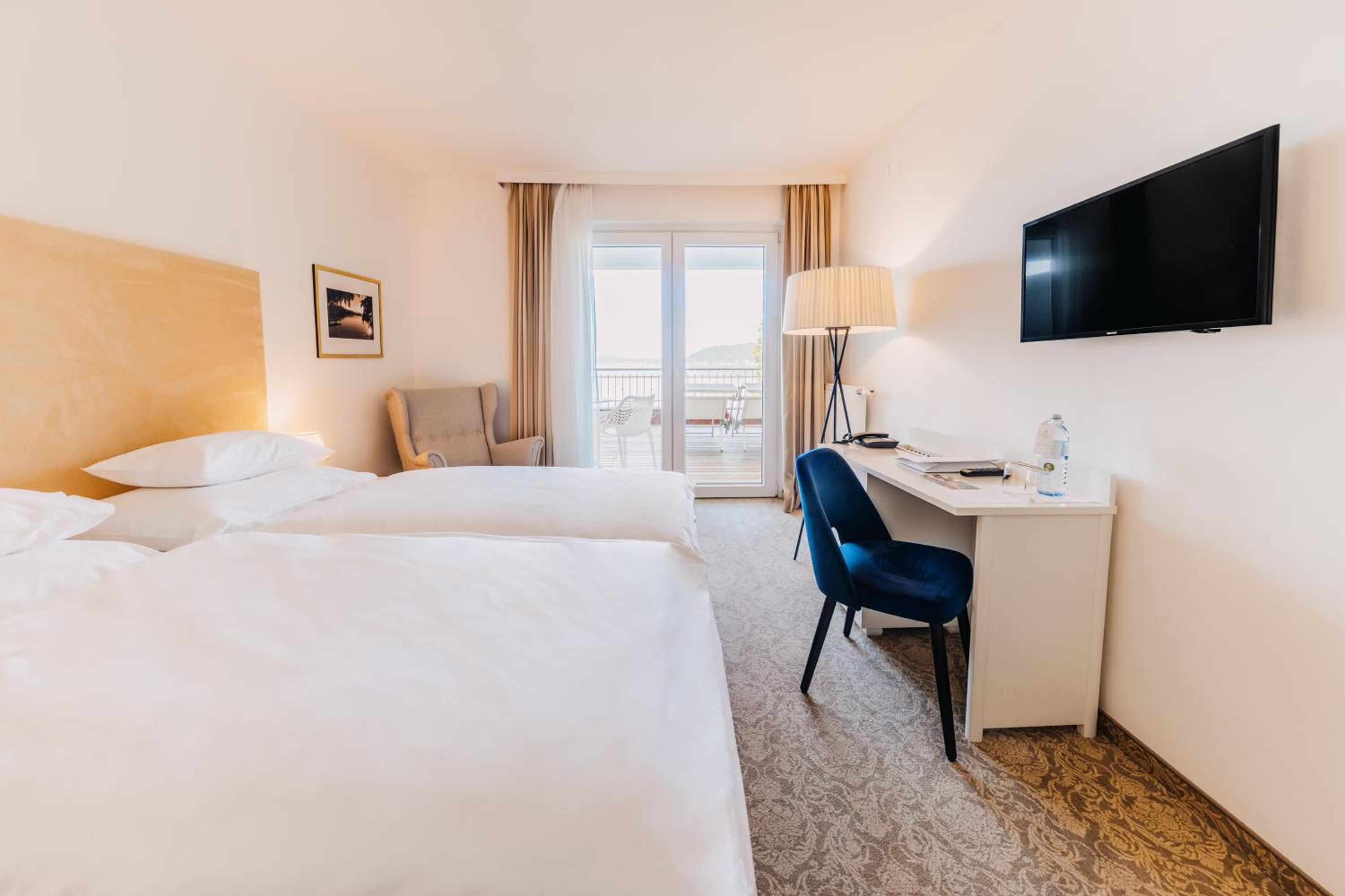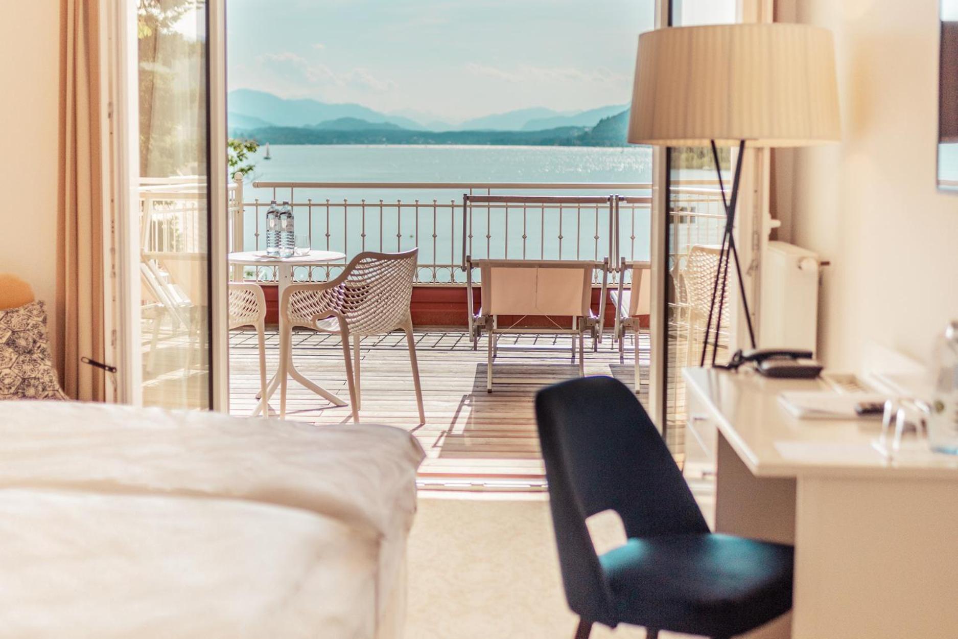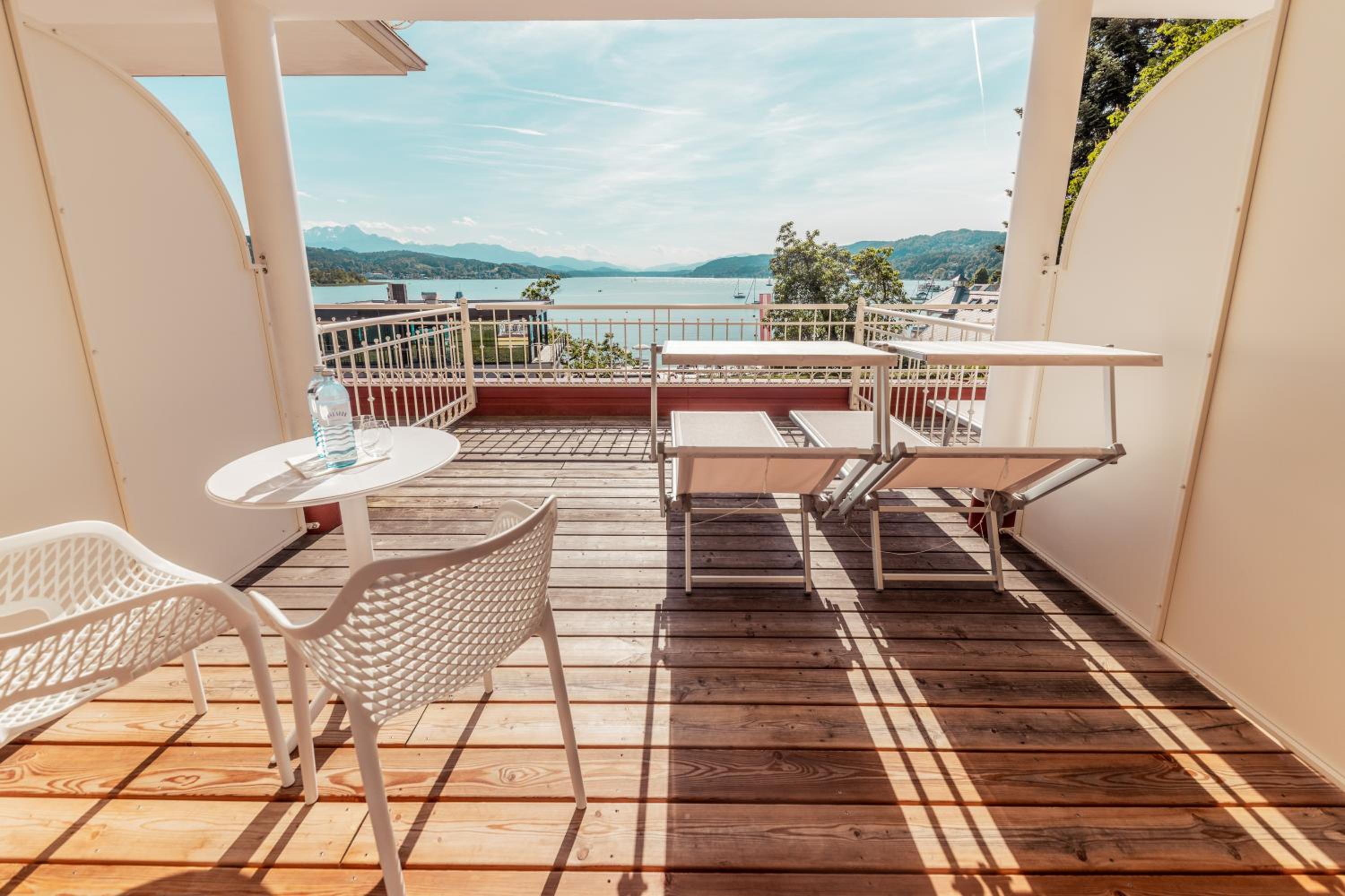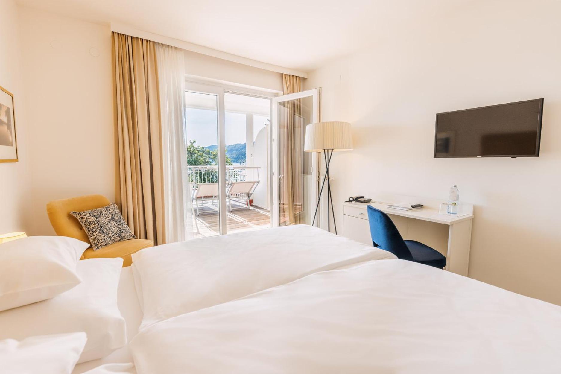Die Lage direkt am See ist top. Der Liegebereich ebenso. Ein sehr angenehmer Bademantel ist am Zimmer. Die Mitarbeiter/innen super, begonnen bei der Rezeption bis zum Service. Aufmerksam und sehr freundlich. Der Wellnessbereich mit 2 Saunen ubd einem Dampfbad sehr angenehm Die Betten sehr bequem. Kissen und Decken ebenso gemütlich. Die Einrichtung der Zimmer ist unterschiedlich. Wir hatten die Ausstattung in einem dunkleren Holz. Gemptlich, wenn auch schon etwas älter. Ruhiges Haus, schöne Bar. Gute Qualität beim Frühstück. Tolle Auswahl an Brot, Obst und Müsli.