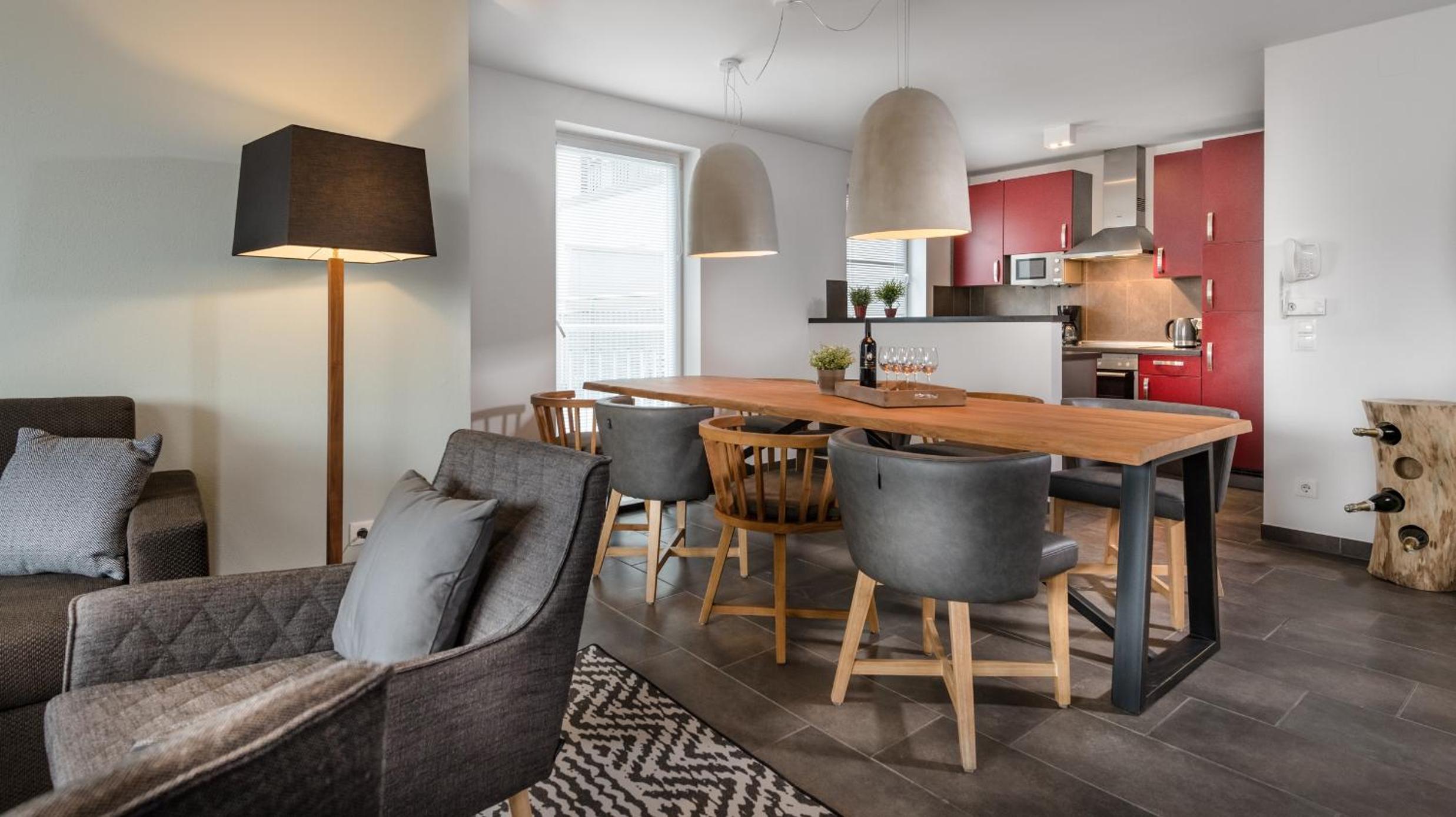 Bardzo dobrze wyposażona kuchnia, duży wygodny stół, cześć dzienna oddzielona od sypialni, bardzo przestronna gustownie urządzona, piękny widok na góry, osoby w recepcji pomocne i miłe, pizzeria na miejscu, w obiekcie, piękna cicha i spokojna miejscowość, thermy stanowiły dodatkową atrakcję, parking podziemny na dwa auta- stałe miejsca, osobne pomieszczenie na narty dla apartamentu. Świetne restauracje w pobliżu szczególnie polecam Restaurację wegetariańską.