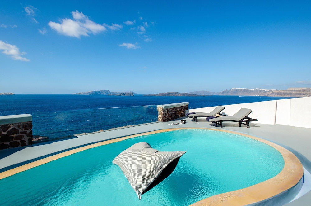 Simply amazing views and beautiful property. We booked a 2 bedroom villa, it was nice but the layout didn't work for us so the manager moved us to another villa with no stairs and it was perfect. The staff was very nice and helpful. The best part was the location, it is located in the south part of the island away from the busy tourist hubs of Fira and Oia but still close to many wonderful restaurants and attractions. The included breakfast was also great with good options.