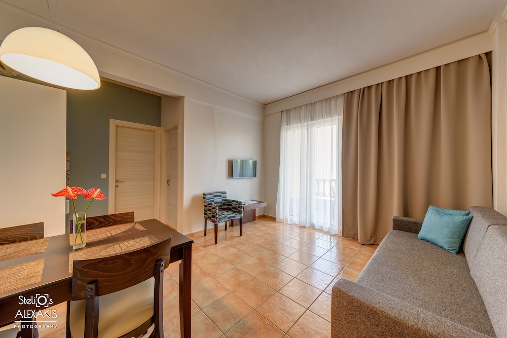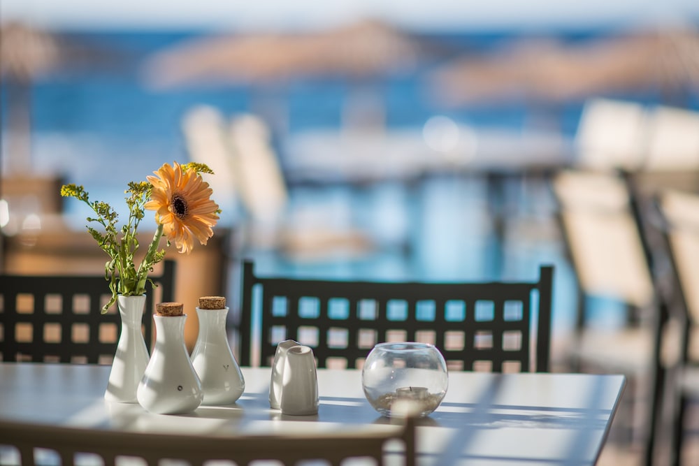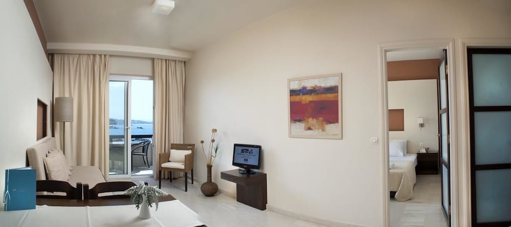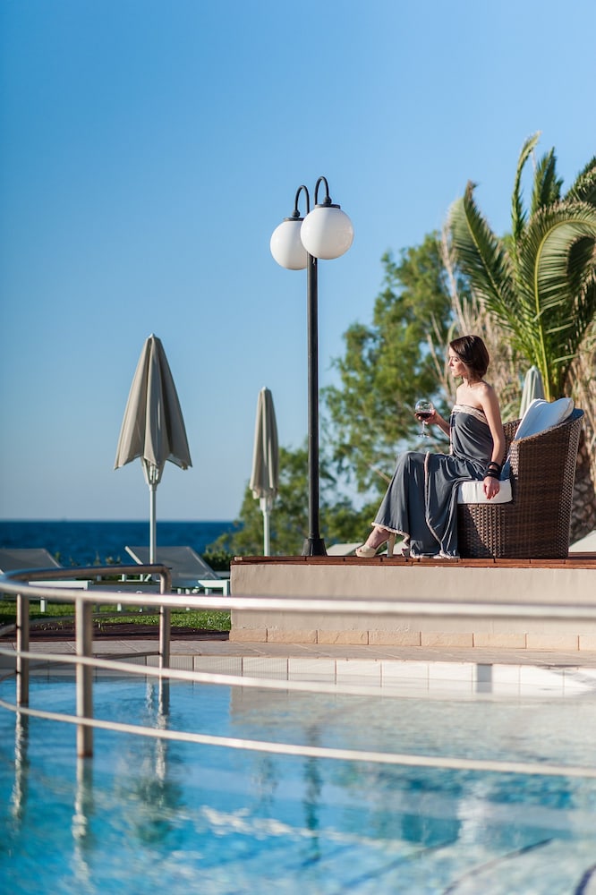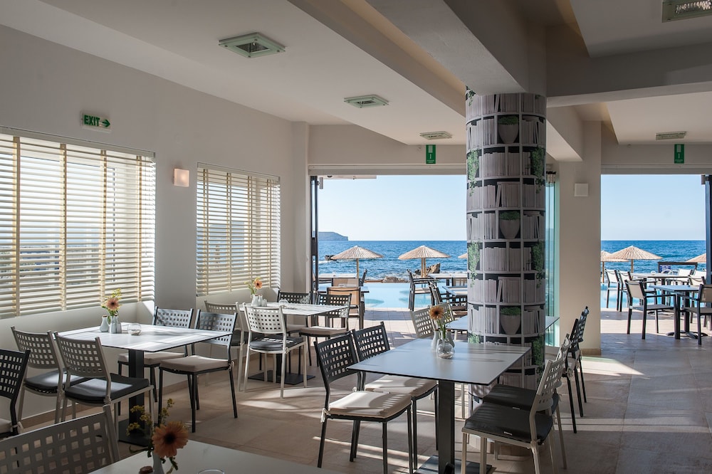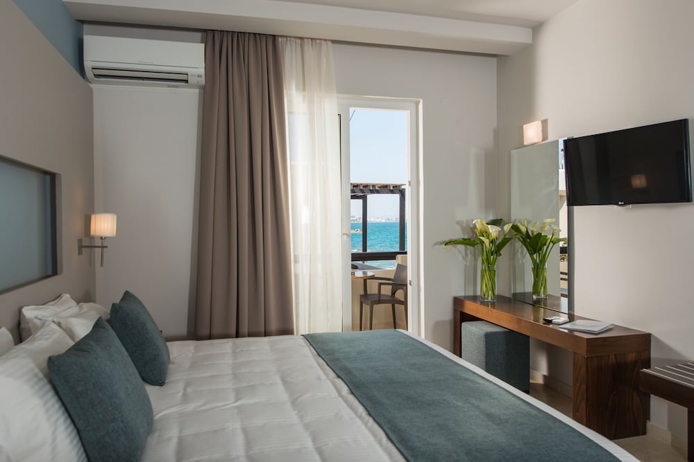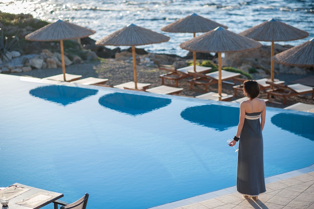 A beautiful hotel. Room was kept spotlessly clean, and very comfortable bed. Friendly staff but not intrusive. Food and drink very reasonably priced, comparable to local restaurants etc. Beautiful clear and clean swimming pools. Lovely pebble beach area, with rocky ocean access via steps. Perfect for snorkeling, though take beach shoes. Sandy beach few minutes walk from hotel if preferred. Most amazing sunset views from hotel every day. Bus stop just outside for easy 20-30 minute inexpensive ride into Chania old town. A handful of nice shops, supermarkets and restaurants within short walking distance.