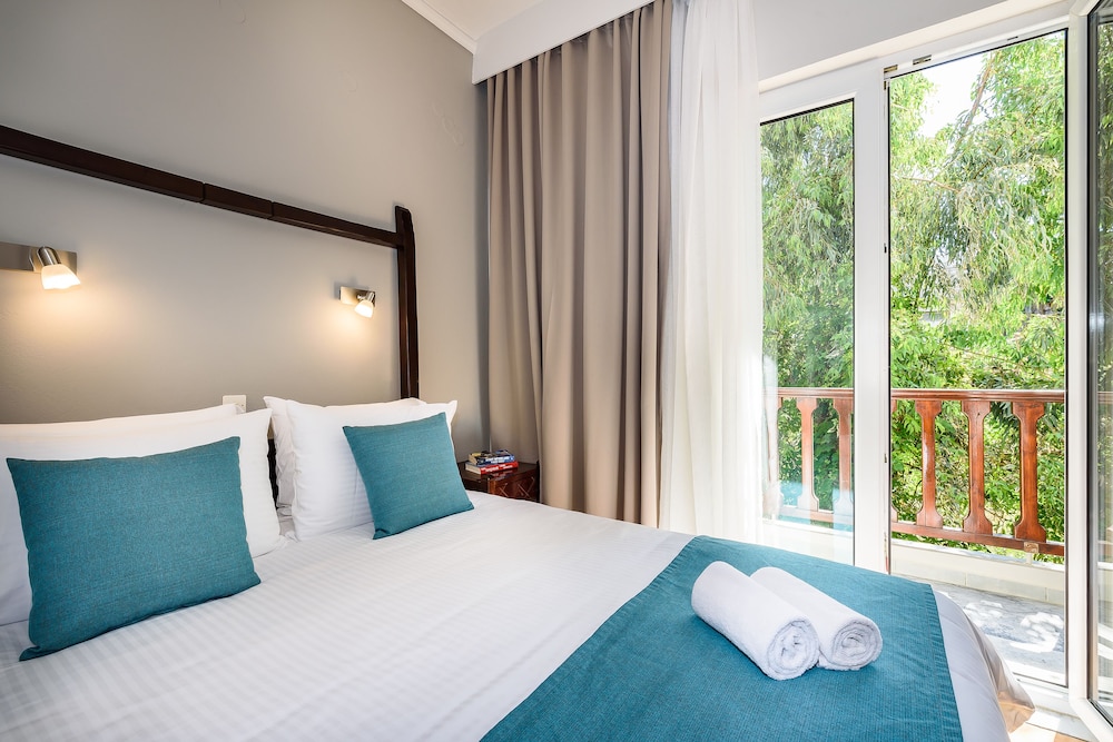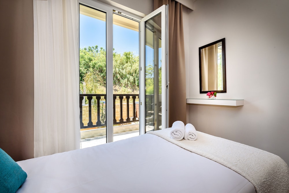 The stay here was amazing. A few days before getting there I was emailed and asked for my expected arrival time. The room was immaculate and cleaned daily by the lovely staff. I had a balcony with partial view. The hotel has an amazing view of the sea with both pools over looking it. Also the bar and restaurant are located by the pools too, so we spent many evenings chilled out having either a pre drink before heading out or night cap on return. Also the food here was great, I loved the chicken and couscous, the Corinna salad and a side of air fried zucchini slices. It was perfection 👌