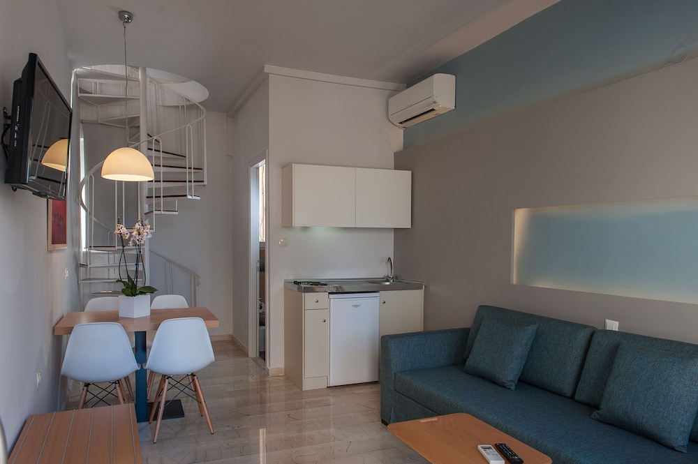 The reception staff are exceptional . Helpful and easy to commincate with. The hotel is In a good spot for the bus into.Chania too. Buses run really.frequently. A shop opposite the hotel , which we found very useful. Wine food bus tickets etc. In all a lovely place to.stay.