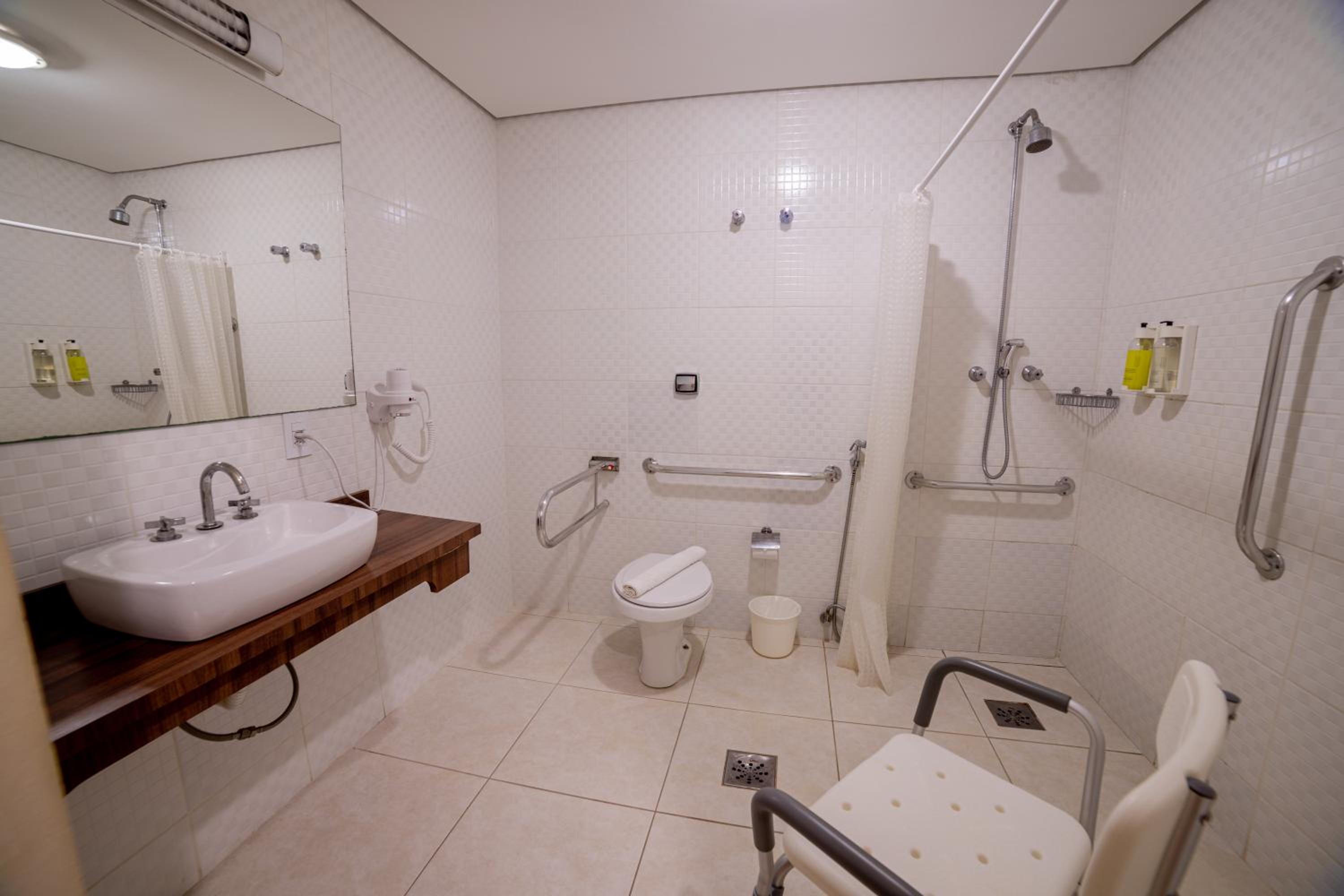 Faz falta barras de segurança nos banheiros.
