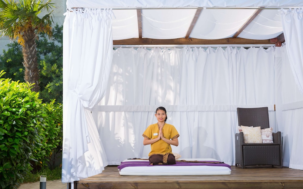Очень довольна отдыхом и одназначно приеду еще. На теме чистоты не буду останавливаться, то, что должно быть белоснежным - белоснежное, то, что должно блестеть - блестит. Отличные действительно подогреваемые бассейны и термальная зона, и с градусником все отлично, в мае было прохладно на улице, но при этом очень комфортно в бассейне. (есть, с чем сравнить, в отеле напротив утверждают, что в бассейне 27 градусов, но на деле, было 23, замеряла инфракрасным градусником, дети вылезали дрожащими через 10 минут). Очень приветливый персонал, внимательный к гостям. Отличная детская анимация, дети при деле весь день, детская игровая хорошо оснащена, аниматоры организовывают и занятия, и игры, и перед завтраком приветствуют. Завтраки отличные, отдельно организованный детский стол и он весьма разнообразен. В общем на данный момент считаю лучшим местом для отдыха с детьми - и в отеле много всего, даже в дождь было чем заняться и вокруг в пешей доступности много всего детоориентированного.