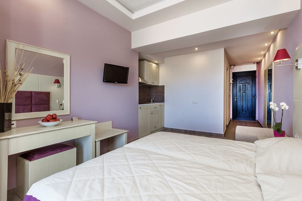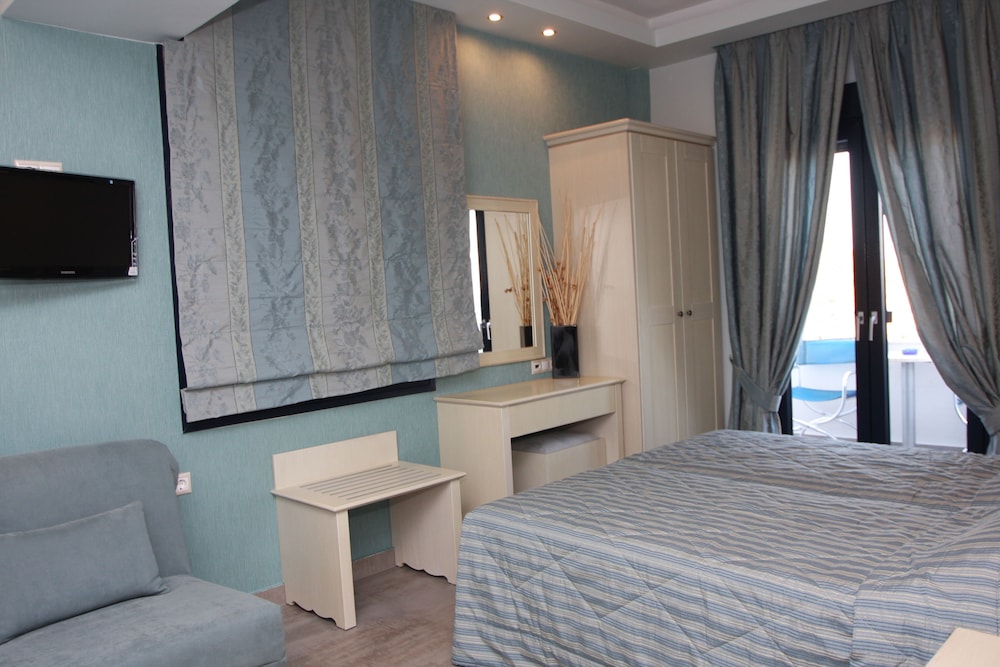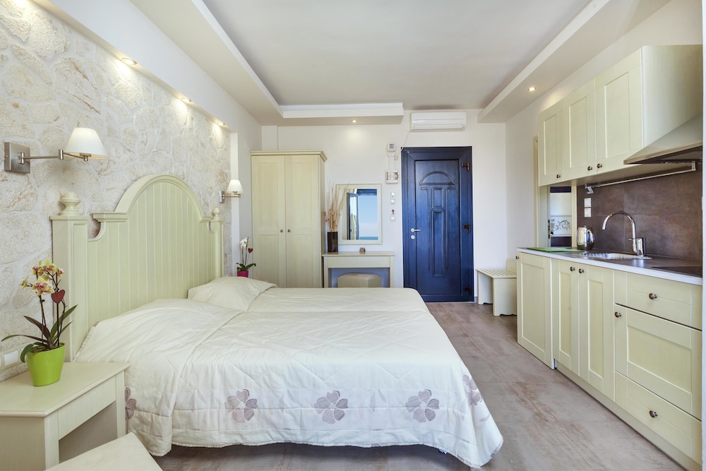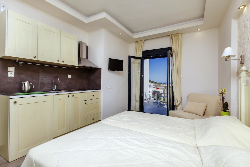 Lakkis and Alkis couldn't do enough for you and were on hand whenever needed. The accommodation was completely refurbished in 2012 to the highest standard and it shows. Everything was immaculate, the rooms were cleaned every day with towels and bedding being changed on alternate days - the maid even did the washing up daily. Free internet connection was a bonus, as was the air-con and the parking. Conveniently situated a 5-minute walk for local shops, bakery and tavernas - I would particularly recommend the Sea Shell and Mnepaema tavernas on the harbourside for good, freshly prepared food at reasonable prices. The bowl of fruit, local sweets and bottle of water in the room on arrival were a nice touch and the view from the balcony was stunning! Can't wait to go back next year and I can't recommend highly enough to anyone over 18.