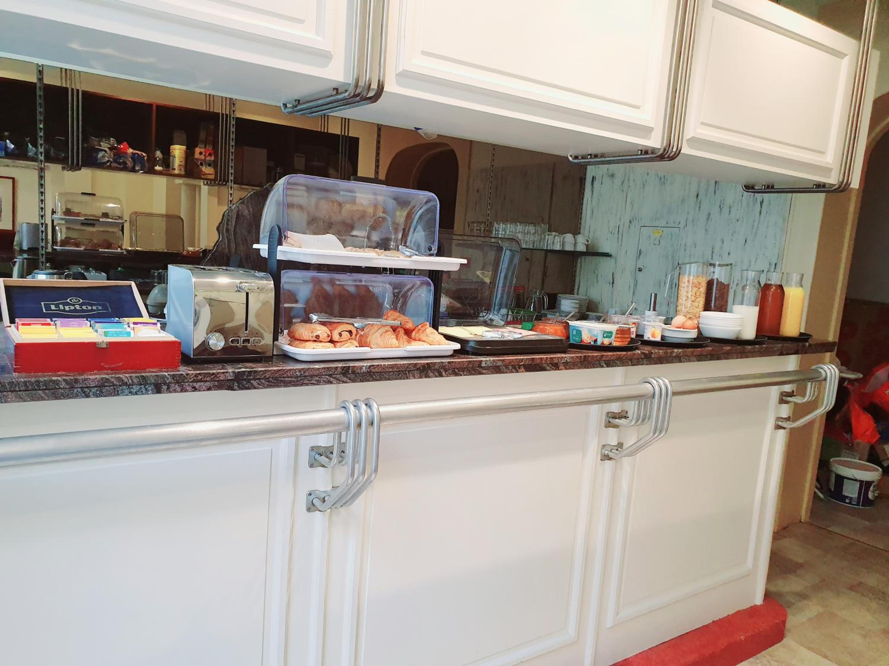 So, The hotel's location is very convenient, right next to the city Center and the metro station. There are wonderful cafes and pastry shops nearby.