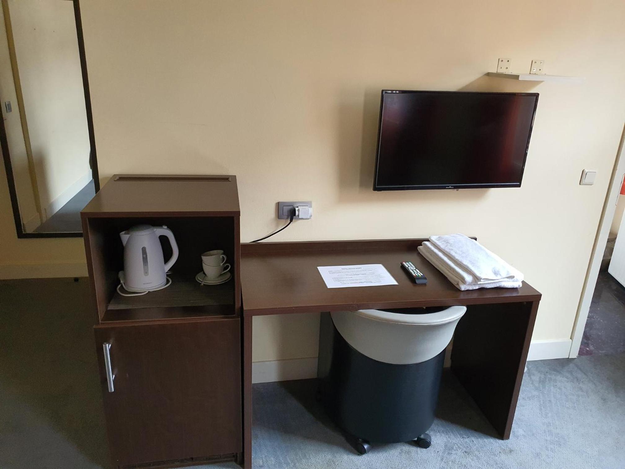 Kohtalaisen edullinen huone keskustan tuntumassa omalla kylpyhuoneella.