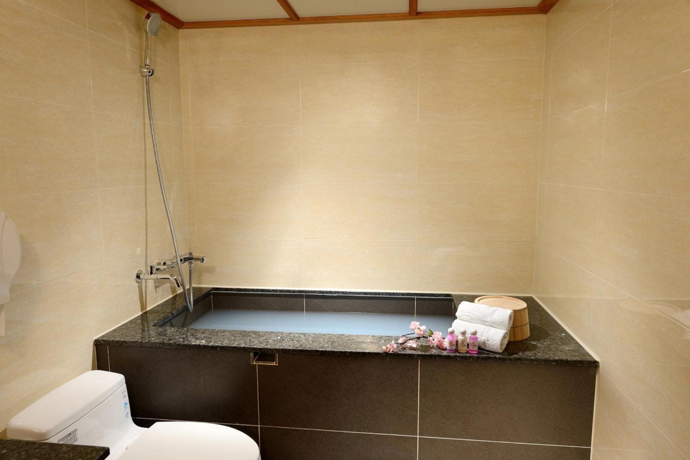 Indulge in the ultimate relaxation with rooms featuring hot spring bathtubs. Enjoy the comfort of spacious rooms with modern amenities like a flat-screen TV and complimentary Wi-Fi.