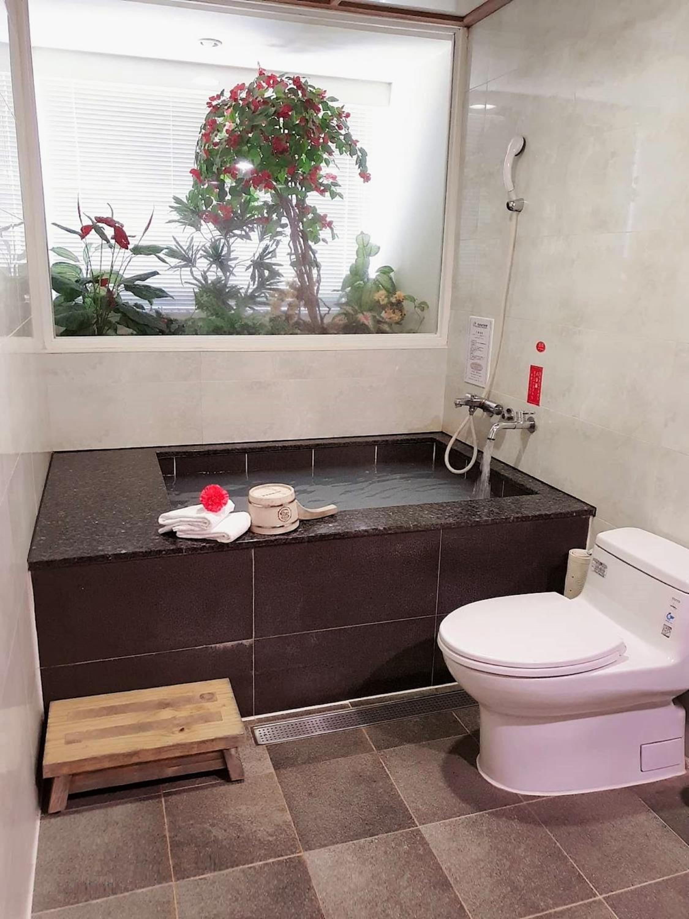 房間有浴缸可以泡溫泉,優
